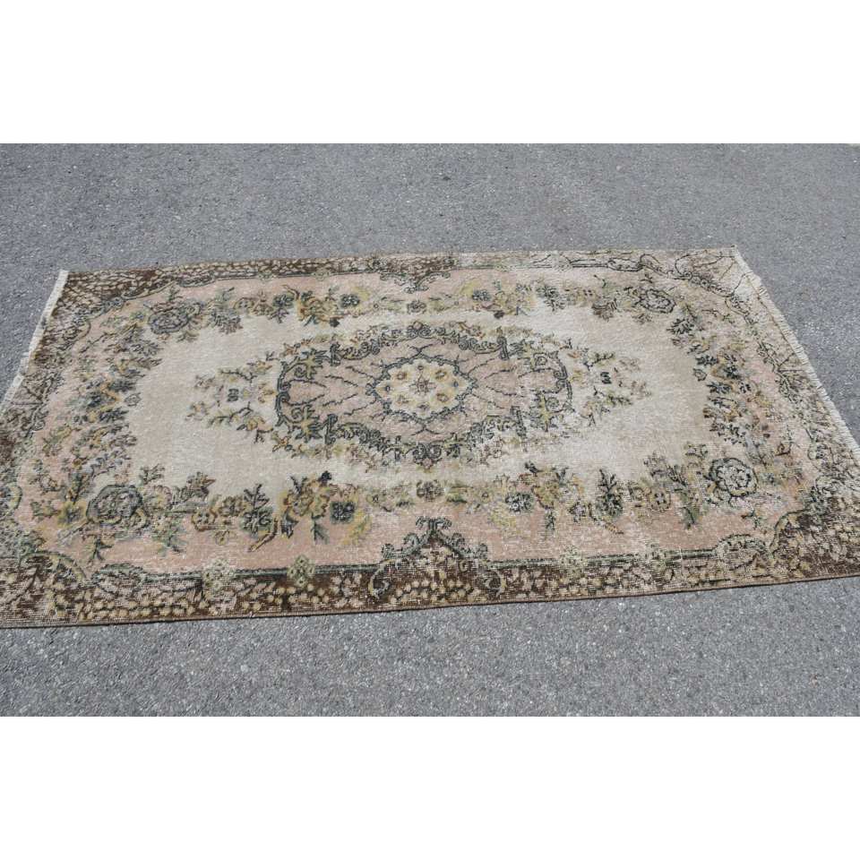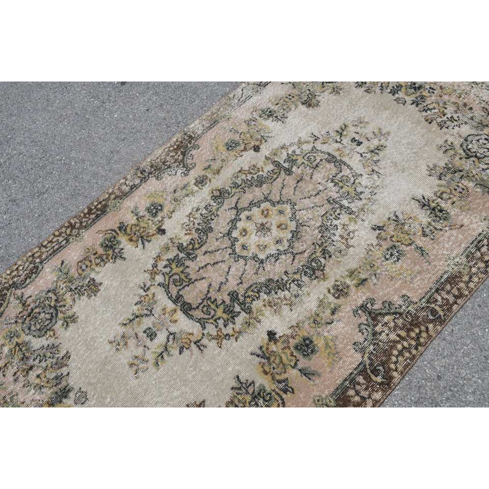 Tapis turc vintage Beige-Rose Patchwork plat tissage 3.8x6.9 pieds pour salon décor laine matériel avec support en latex 4m de largeur