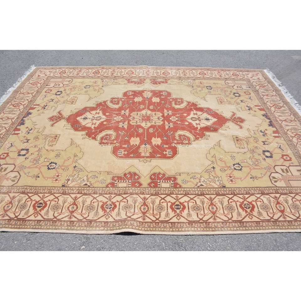 Tapis turc Vintage Beige Rouge 8.2 X 10.7ft grande surface laine Patchwork Design pour couloir chambre Latex parfait chambre tapis de chevet