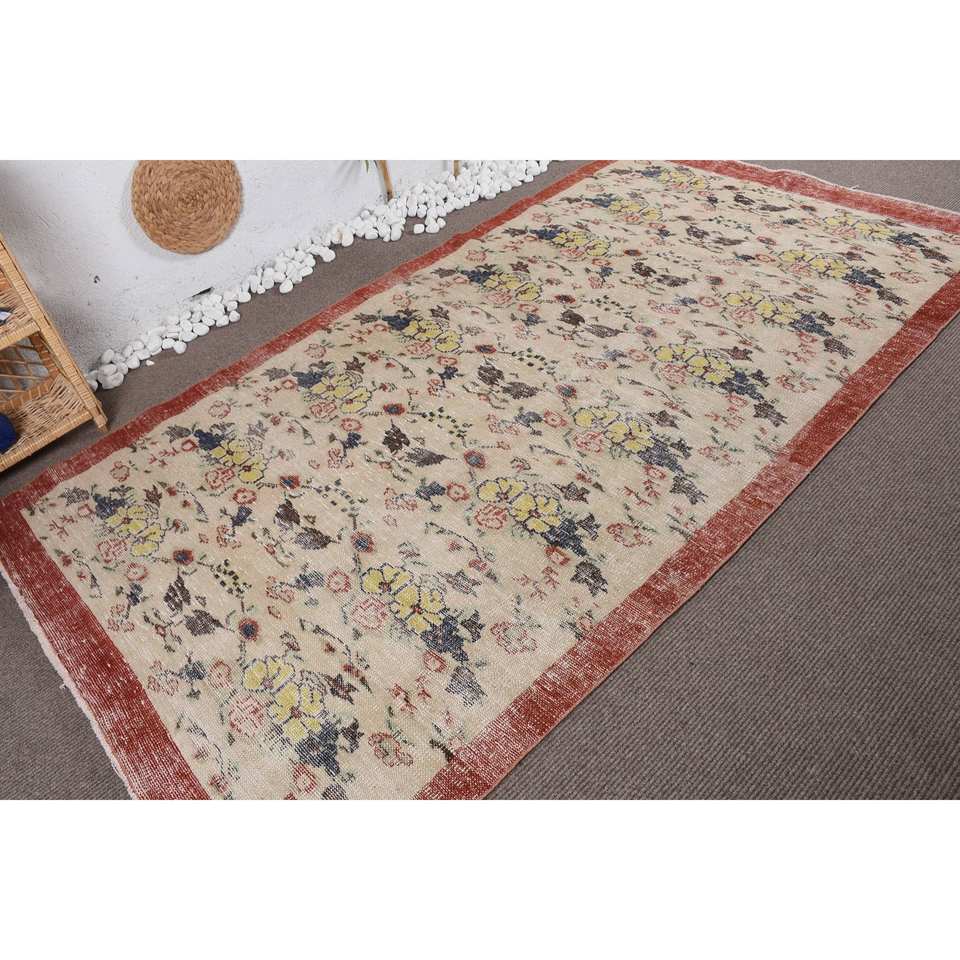 Tapis Vintage Turc Beige Rouge Patchwork Motif Laine 5.1 X 9.4ft Rectangle Grande Surface 10mm Latex Couloir Chambre Décor