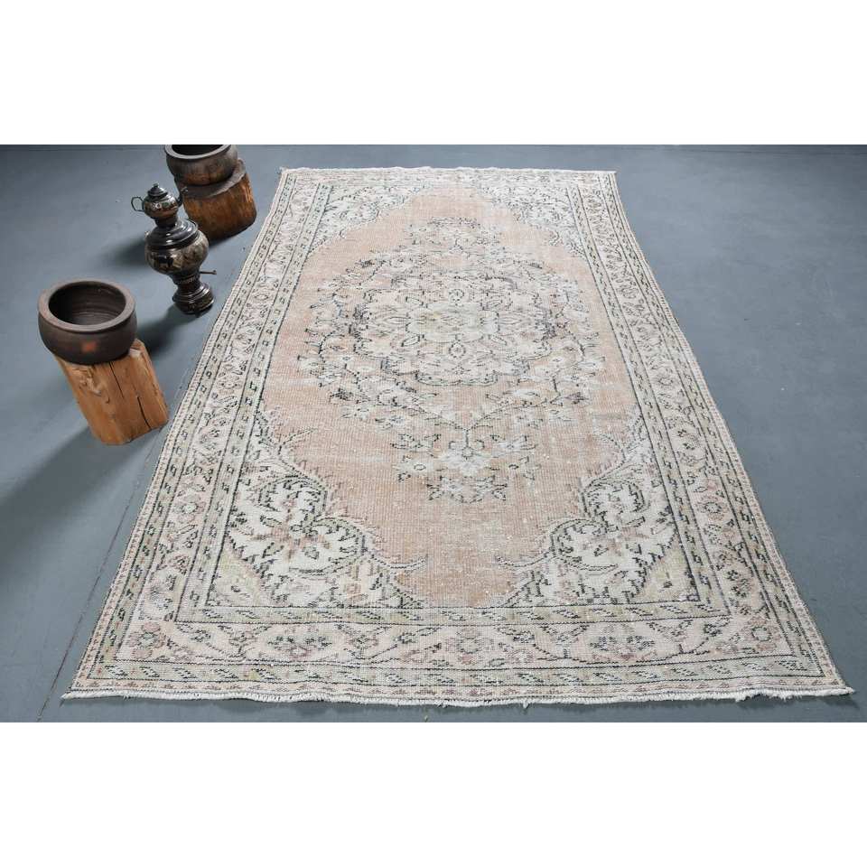 Tapis Turc Vintage Beige Blanc 5.4 X 9.3ft Laine et Fourrure Plat Tissage Patchwork Motif pour Décorations de Salon