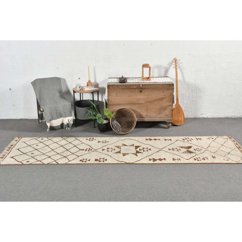 Tapis Vintage Turc Bohème Beige Marron 2.6 X 10.4ft Grande Surface Patchwork Tissage Plat Laine Latex pour Couloir Rectangle Espace