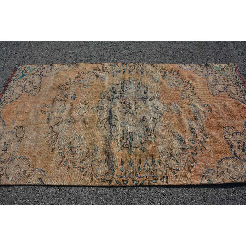 Tapis turc vintage classique 4X7,7 pieds Orange bleu Patchwork Design laine grande surface tapis de chambre plat tissage Technique support en Latex