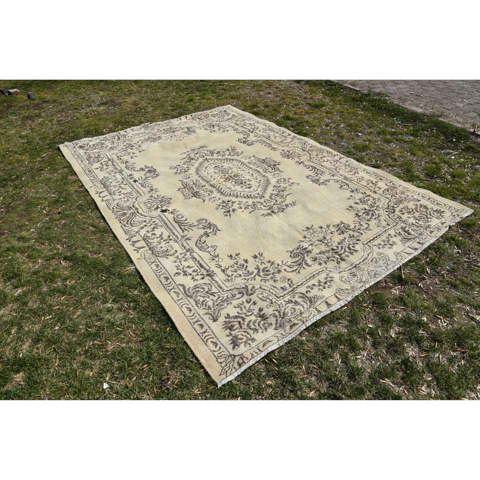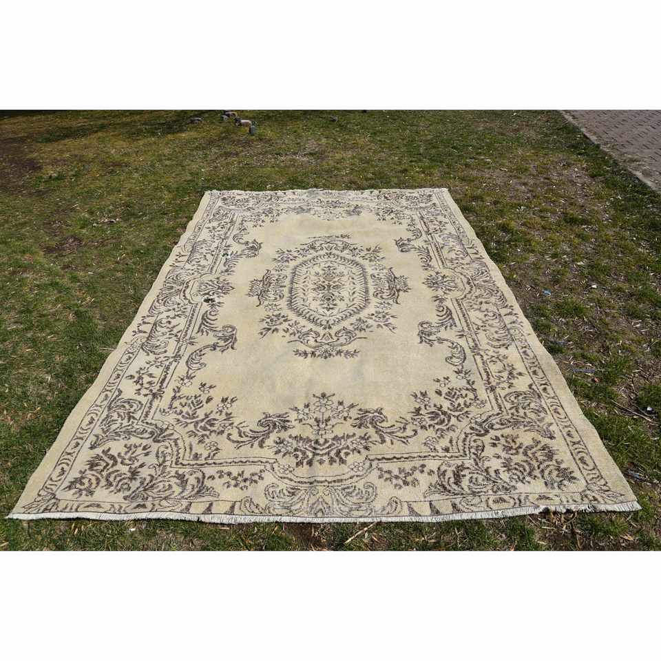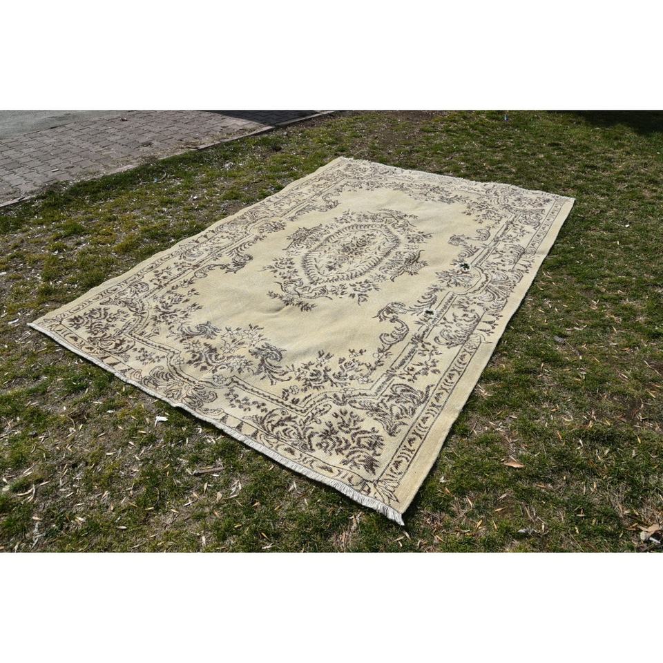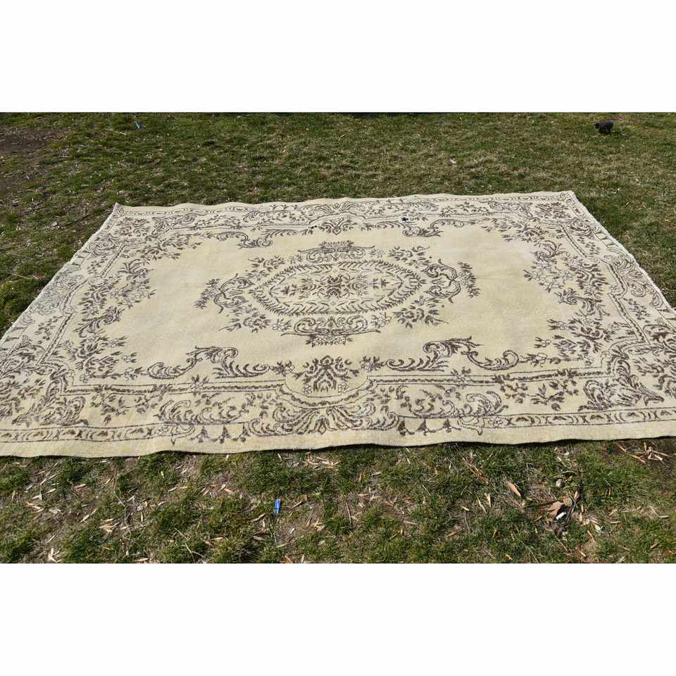 Tapis turc vintage classique Beige marron 6.6 X 9.4ft Patchwork Design Faux lapin fourrure Latex tapis de chevet rectangulaires pour la maison