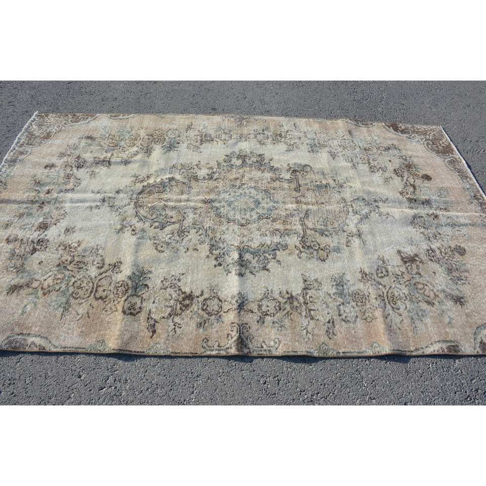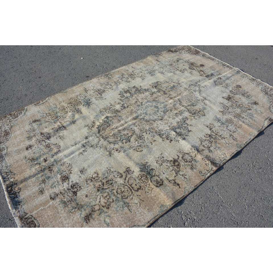 Tapis turc vintage classique Beige marron 5.1X8.4 pieds grande surface laine matériau Latex Patchwork pour couloir chambre tapis de chevet
