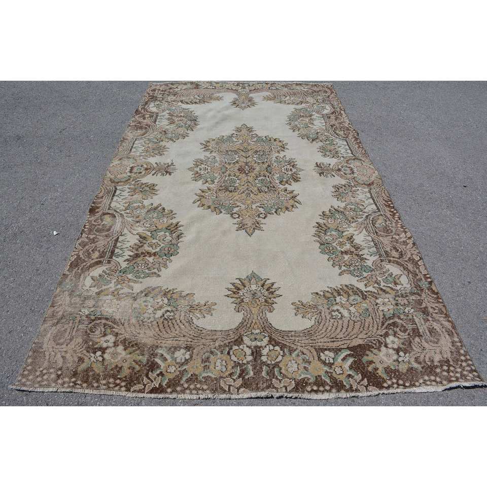Tapis turc Vintage classique Beige marron 5.8X10 pieds fait à la main en laine grande surface Patchwork Design pour couloir chambre nouveau modèle Latex