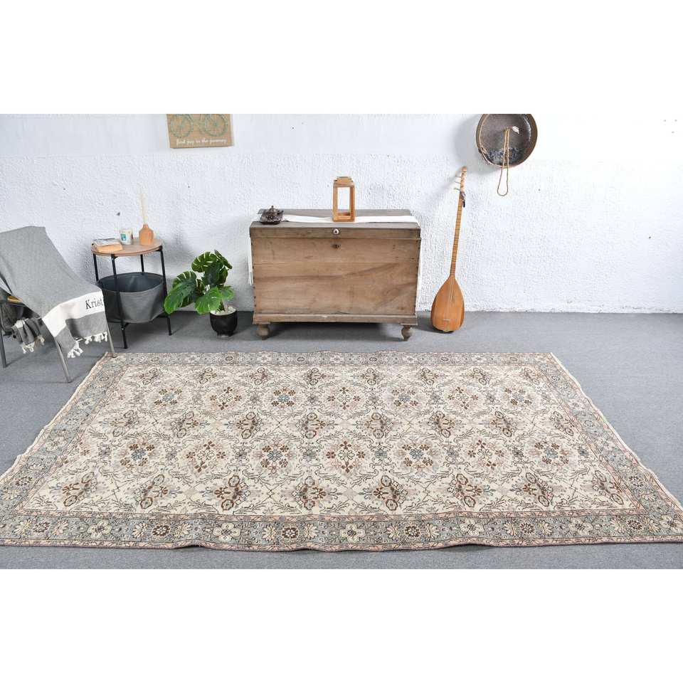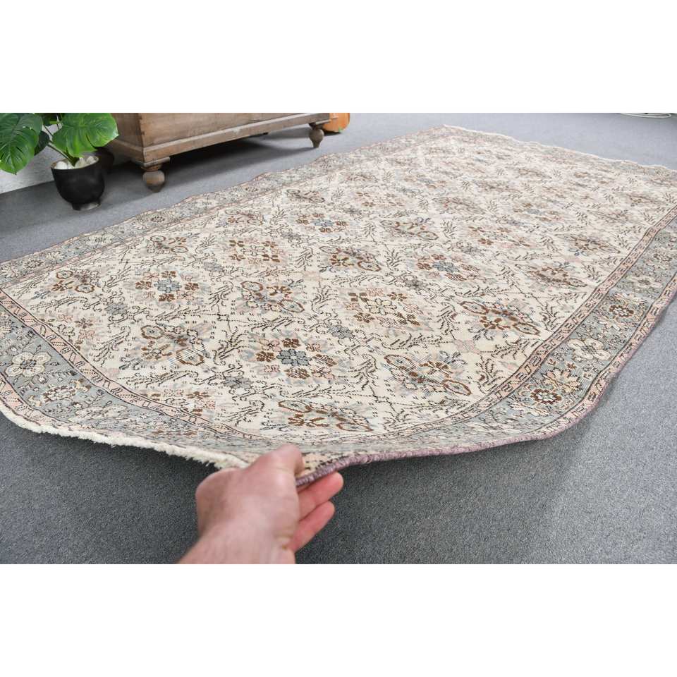 Tapis turc vintage classique Beige gris 5.2x8.9 pieds laine Jacquard tissage plat support en Latex pour adolescent couloir Patchwork Design