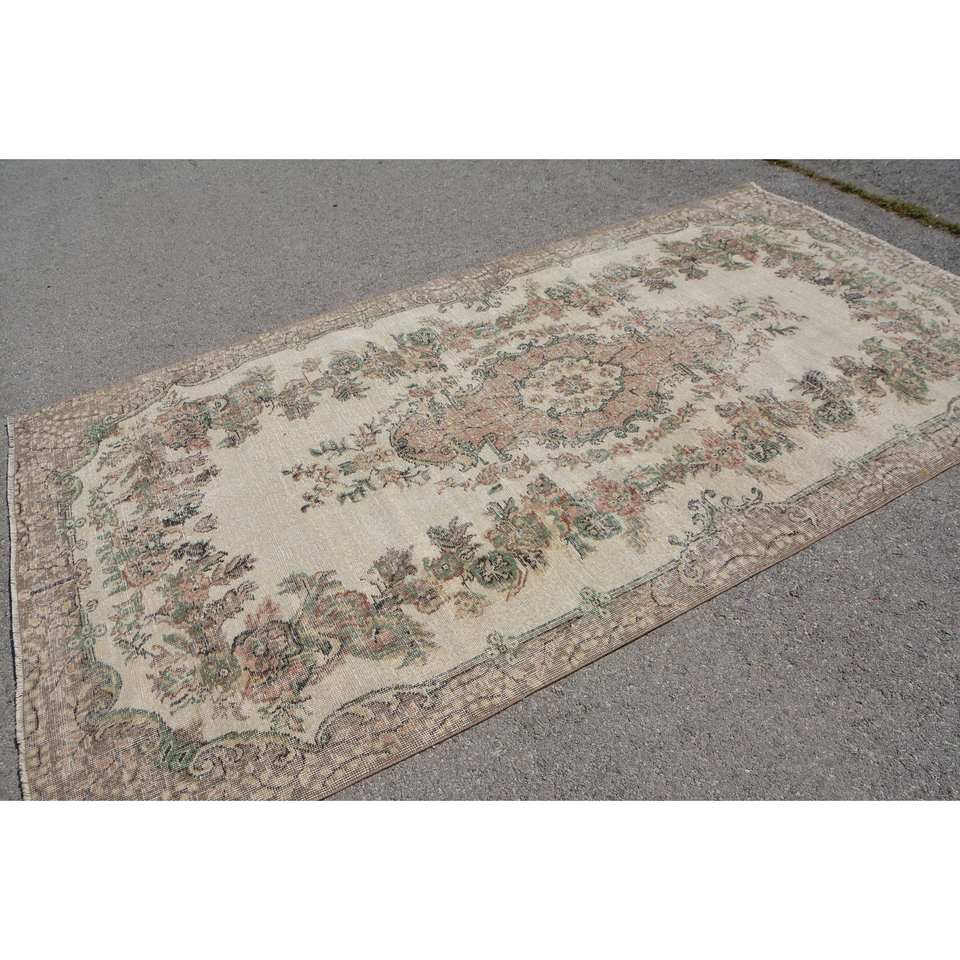 Tapis Turc Vintage Classique Beige Vert 5.3X9.9 pieds Patchwork Boho Plat Tissage Laine pour Salon Jute avec Support en Latex
