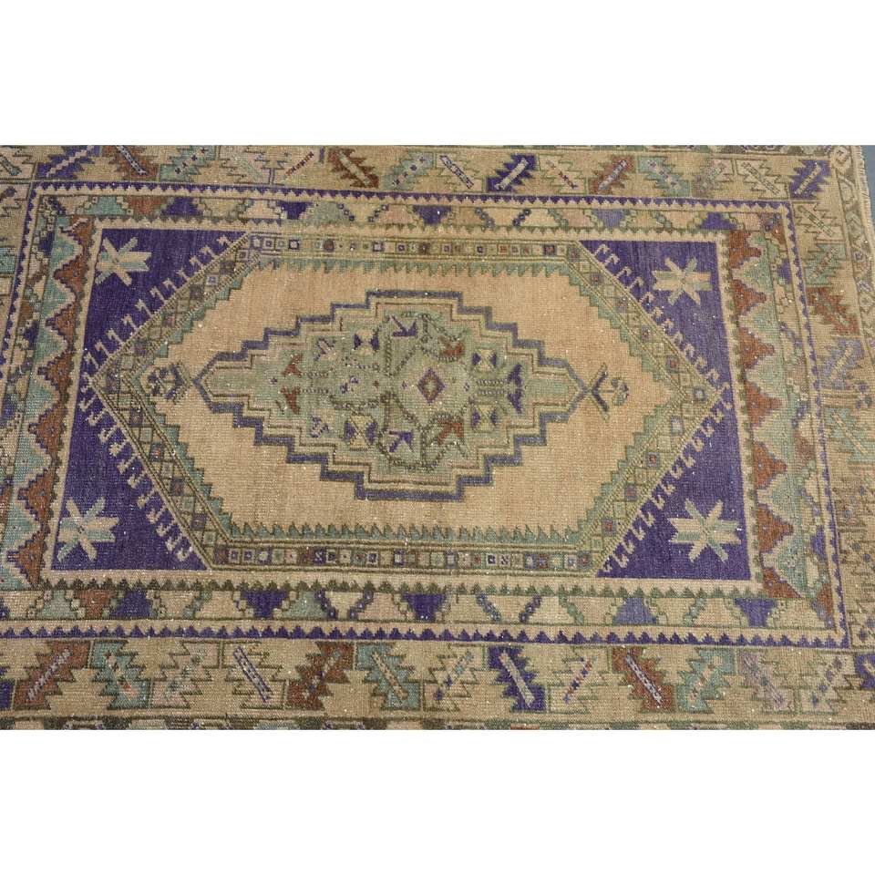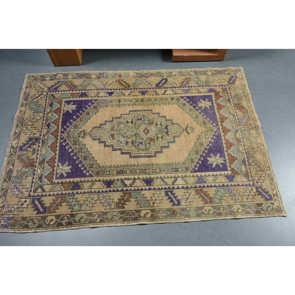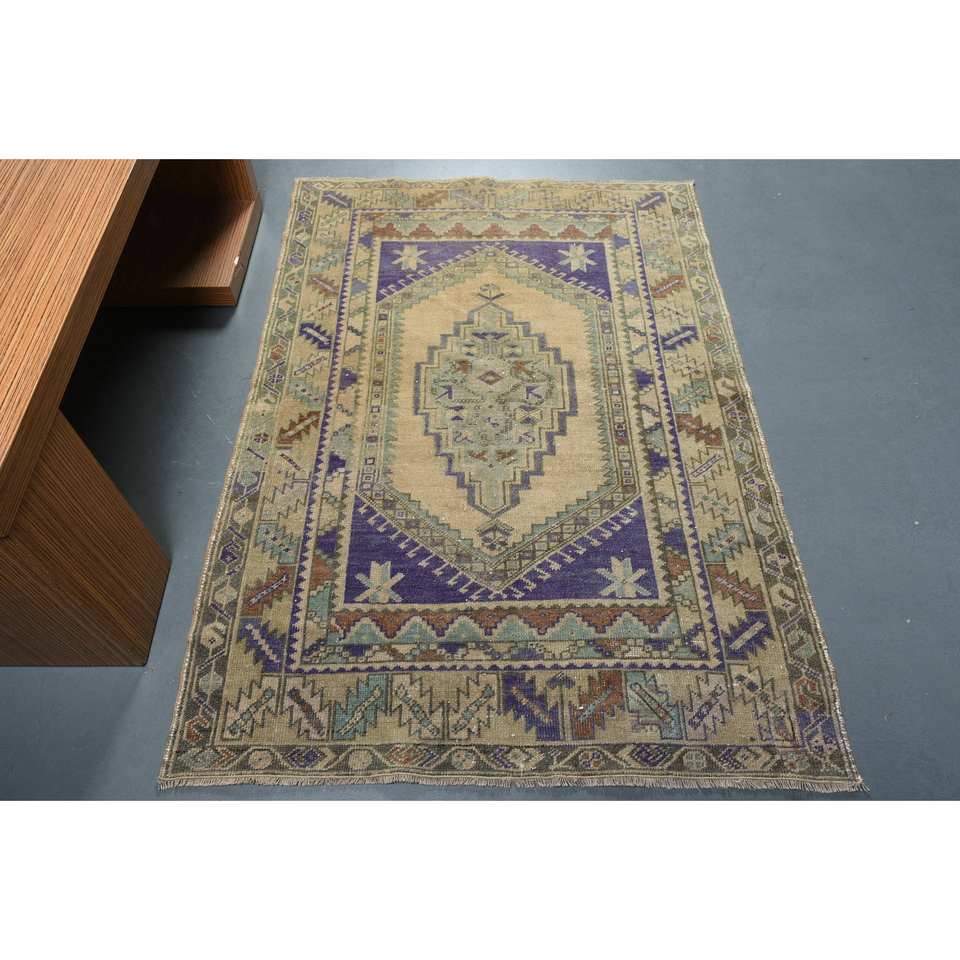 Tapis turc vintage classique Beige et violet 3.6x5,1 pieds laine PVC grande surface salon tapis Latex support pour couloir motif