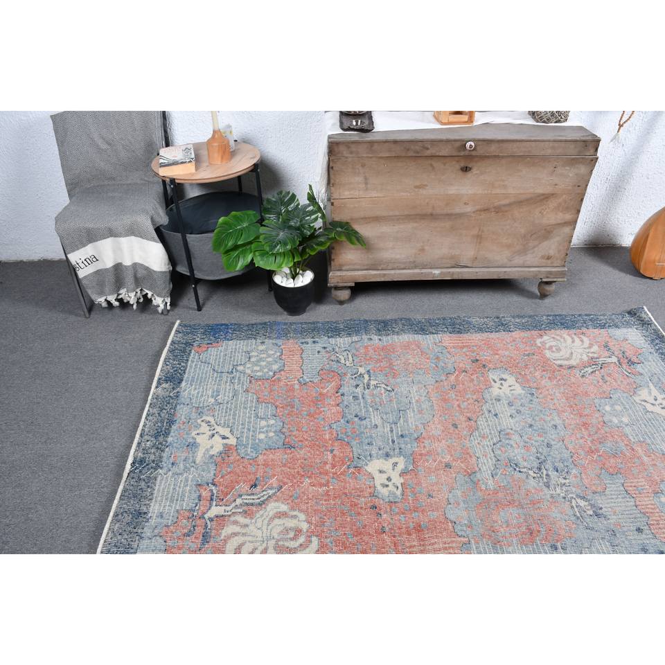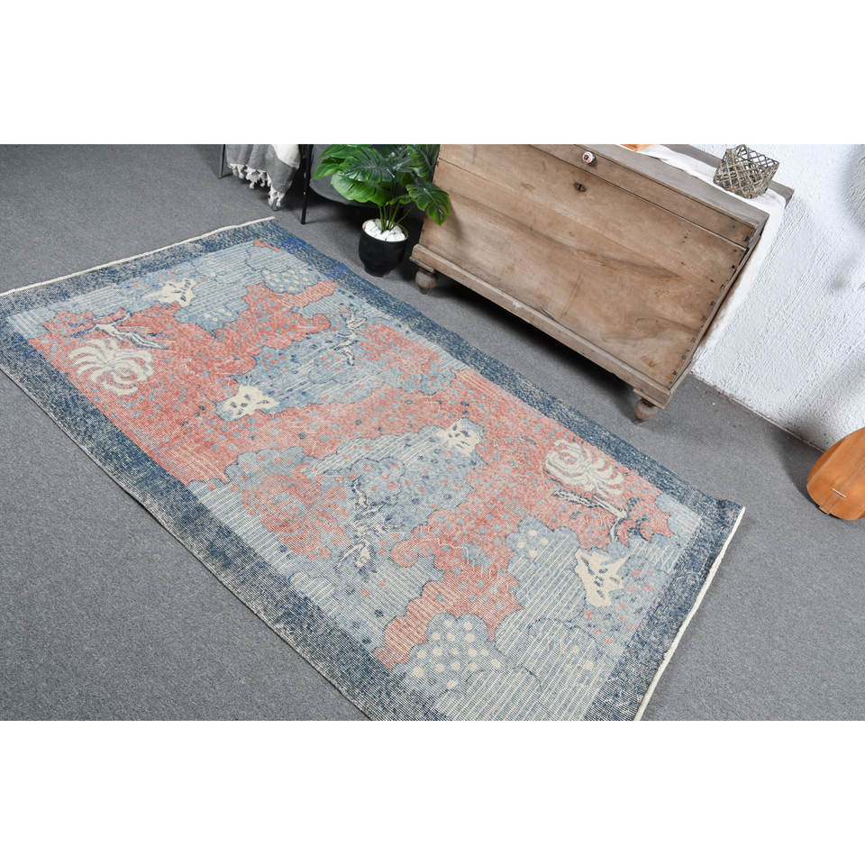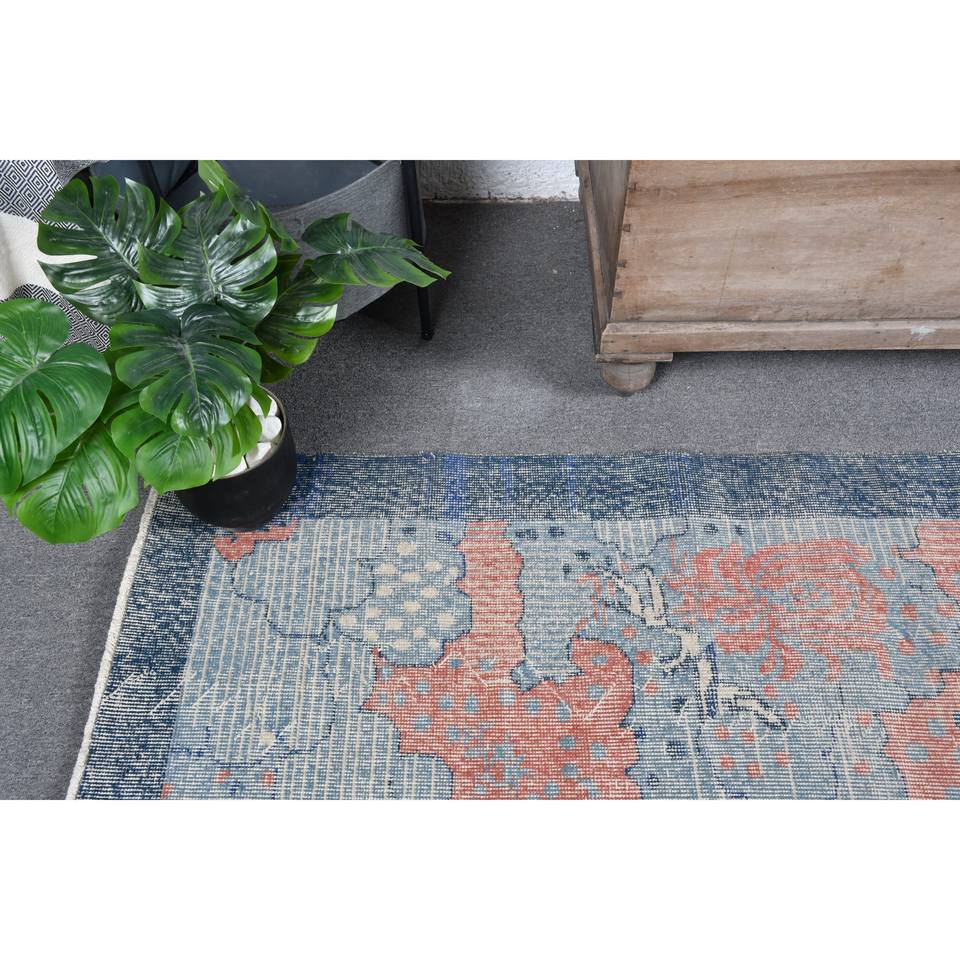 Tapis turc vintage classique bohème bleu et rouge 4 'X 6' laine matériel Latex support pour entrée chevet classique Patchwork Style