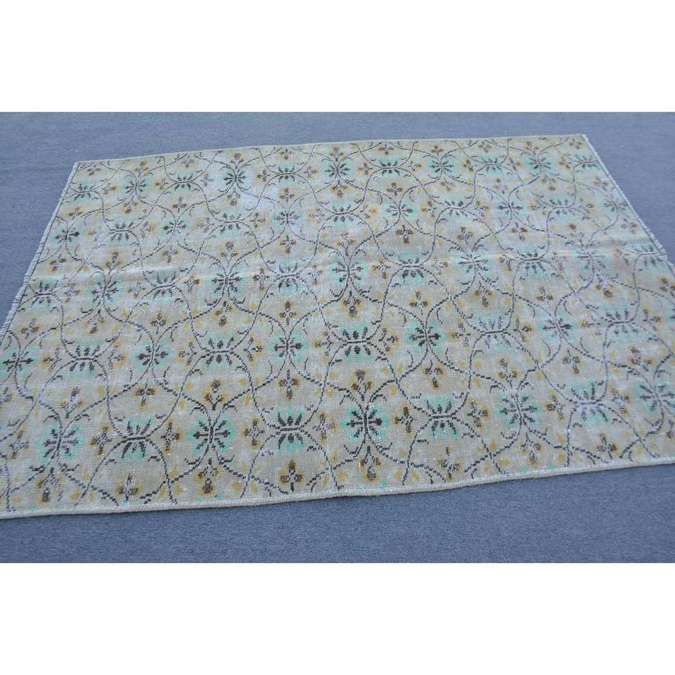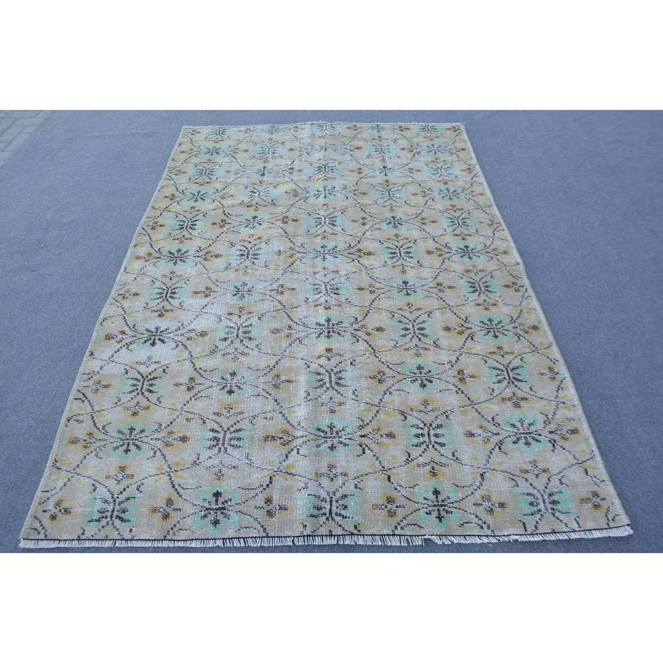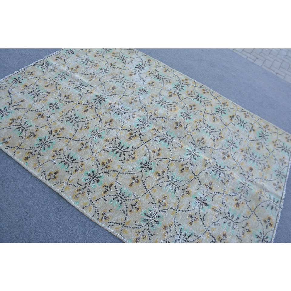 Tapis turc vintage style classique 5.2x7,4 pieds jaune vert laine grande surface Rectangle Patchwork motif pour adolescents modèle chambre tapis