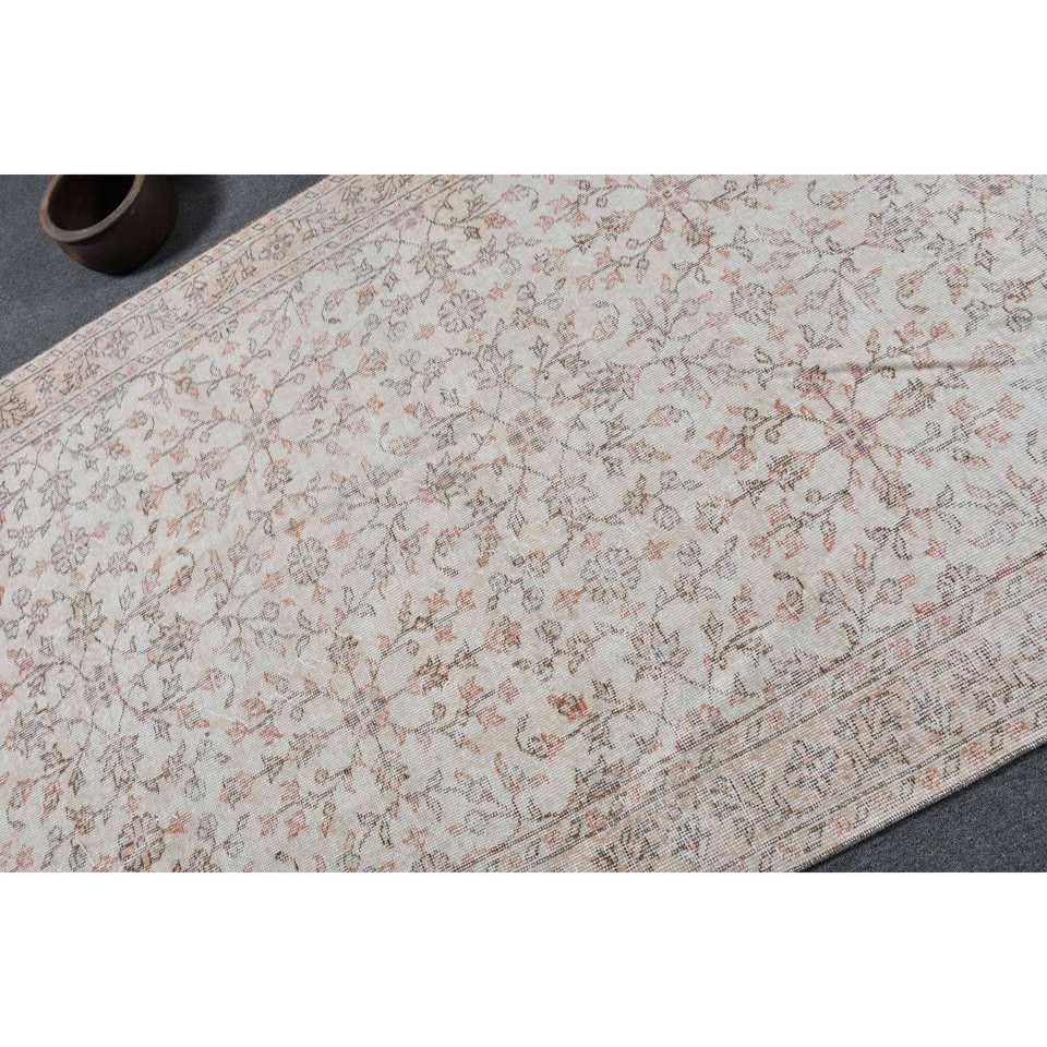 Tapis turc Vintage classique blanc Beige 4.7x8.6 pieds laine Latex support Patchwork pour salon couloir rayé pour les adolescents