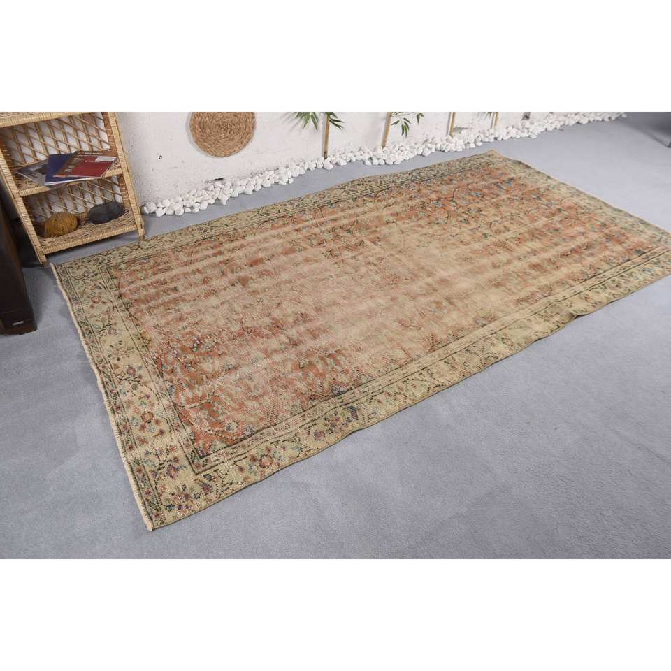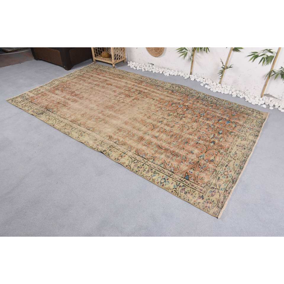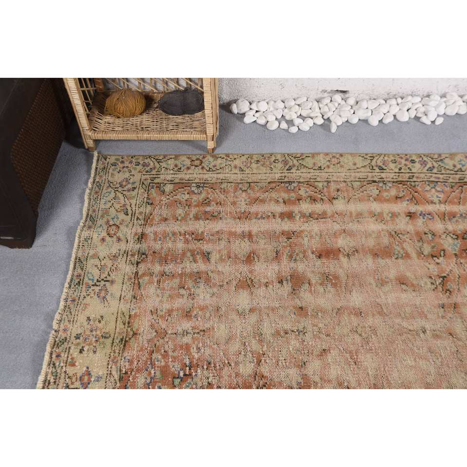 Tapis turc vintage motif patchwork bleu orange 5'1 "x 9'3" en laine tissée à plat avec support en latex pour décorations de salon