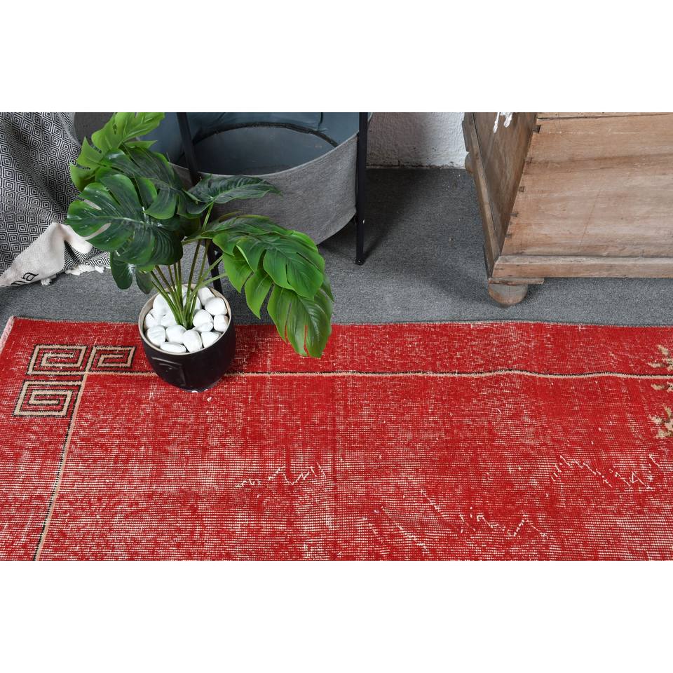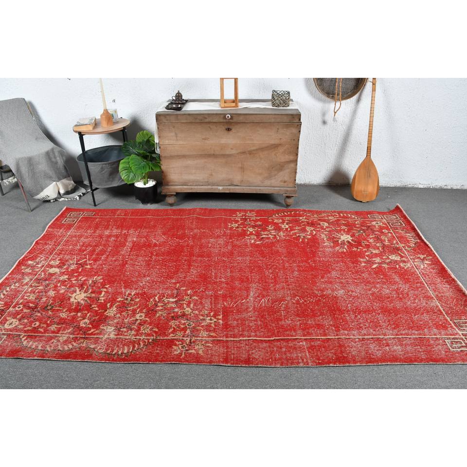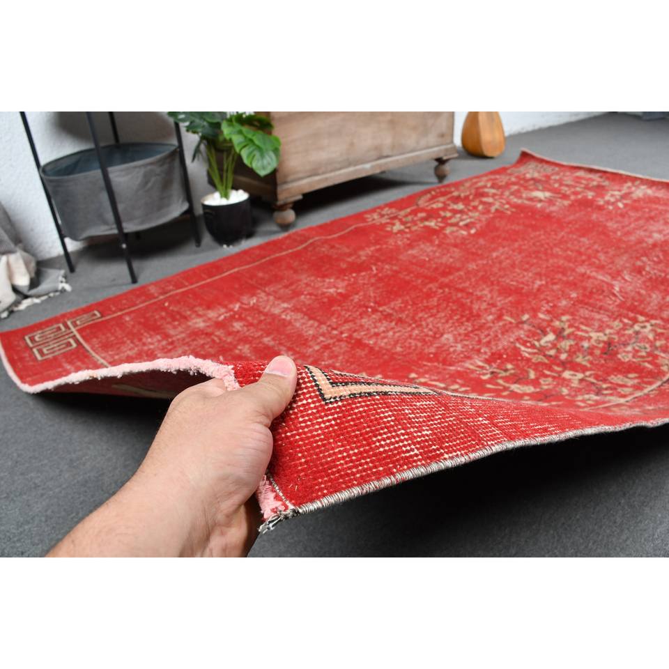 Tapis Turc Vintage Rouge Beige 4.9x8.7ft Grande Surface Laine Latex Patchwork pour Couloir Chambre Rectangulaire Côté pour Chambre Chevet