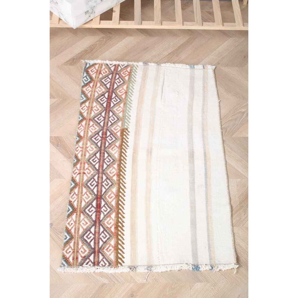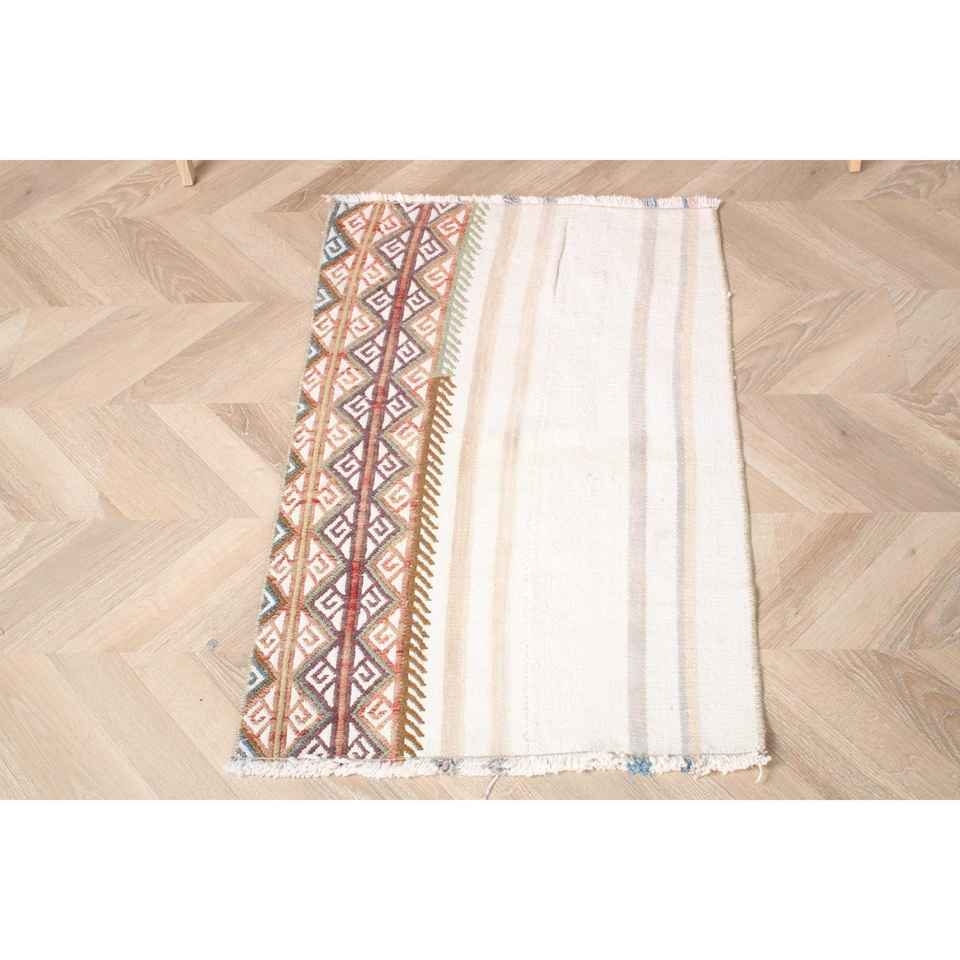 Tapis turc vintage, petit tapis de 1,9 x 3 pieds (57 x 90 cm), tapis oriental en laine blanche