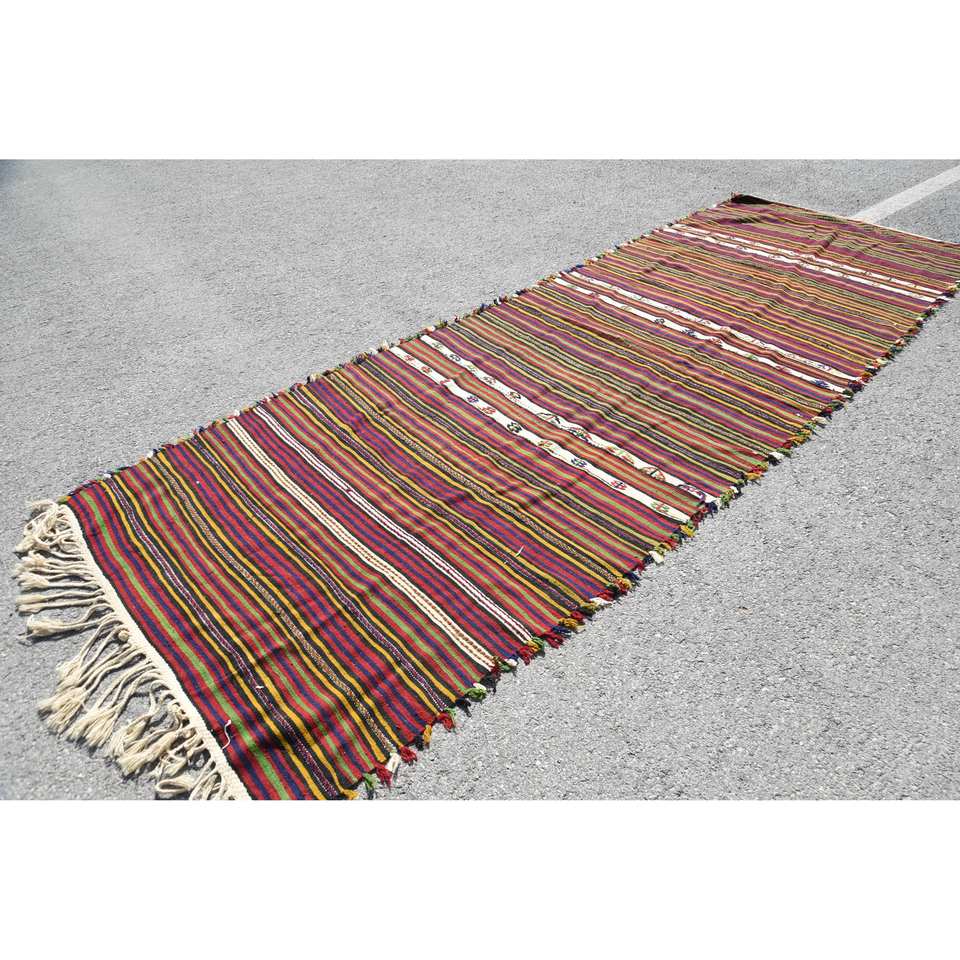 Tapis turc vintage traditionnel rouge 4.7x 13.5ft grande surface laine Latex support 10mm épaisseur Patchwork motif pour couloir chambre