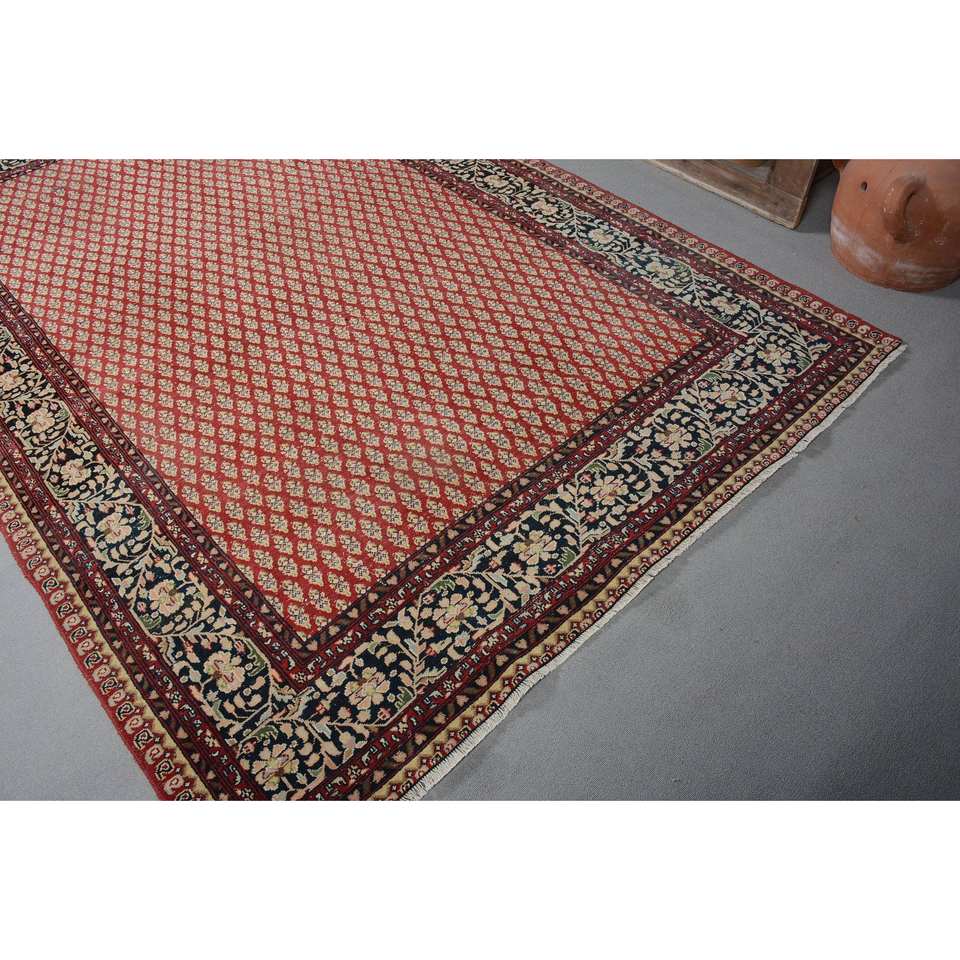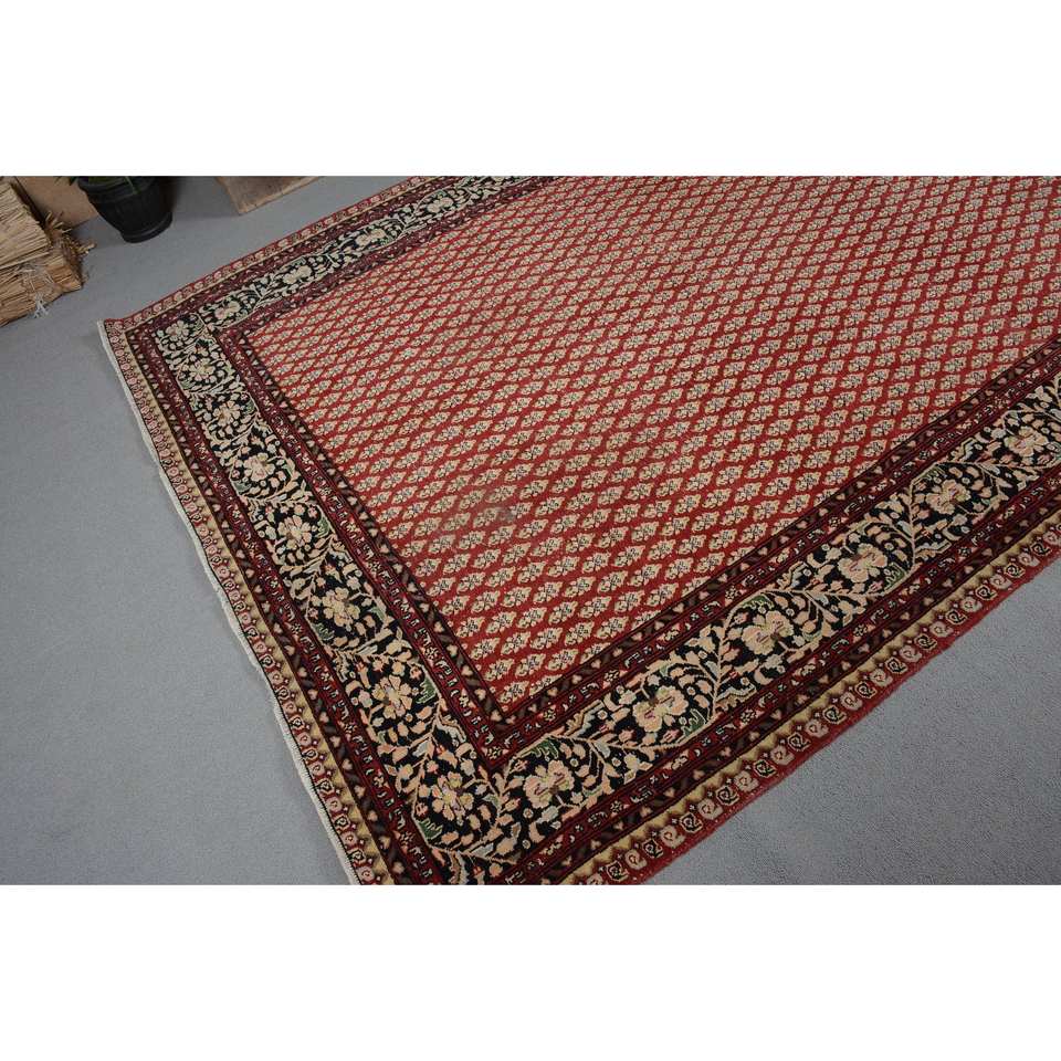 Tapis Vintage en Laine Turque Rouge Beige 6X9ft Classique Patchwork Style Plat Armure Latex Support pour Décorations de Salon Nouveau