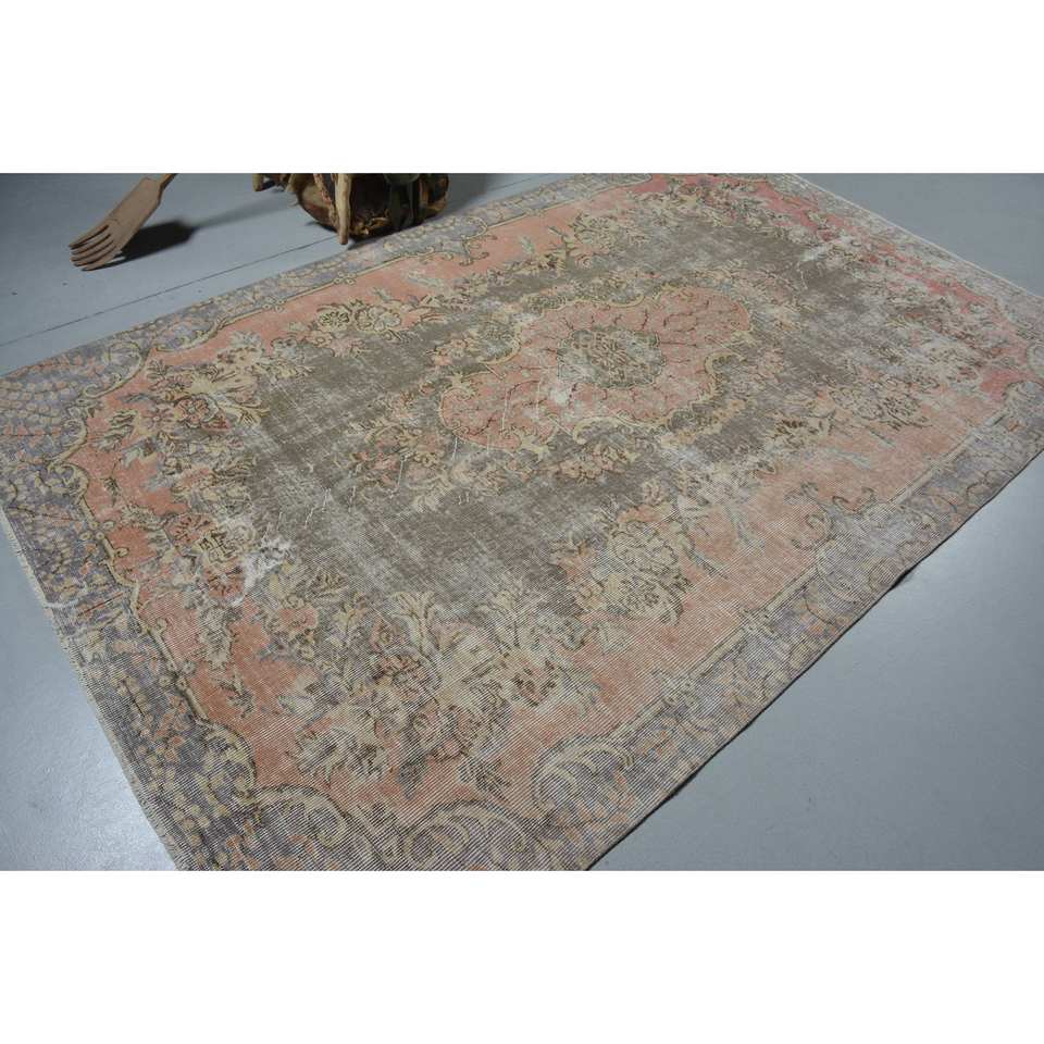 Tapis en Laine Turque Vintage 6 X 9.3ft Grande Surface avec Rose Gris Patchwork Design Rectangle Couloir Style Latex Support pour Usage Domestique