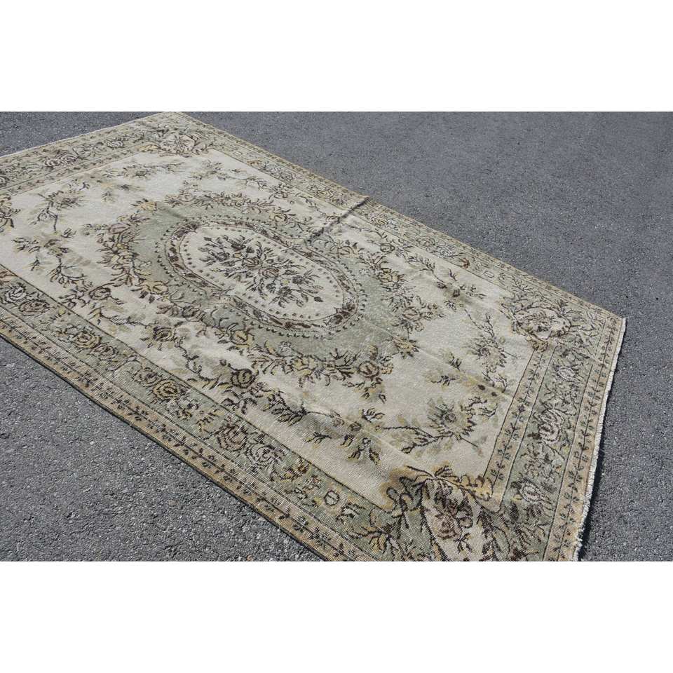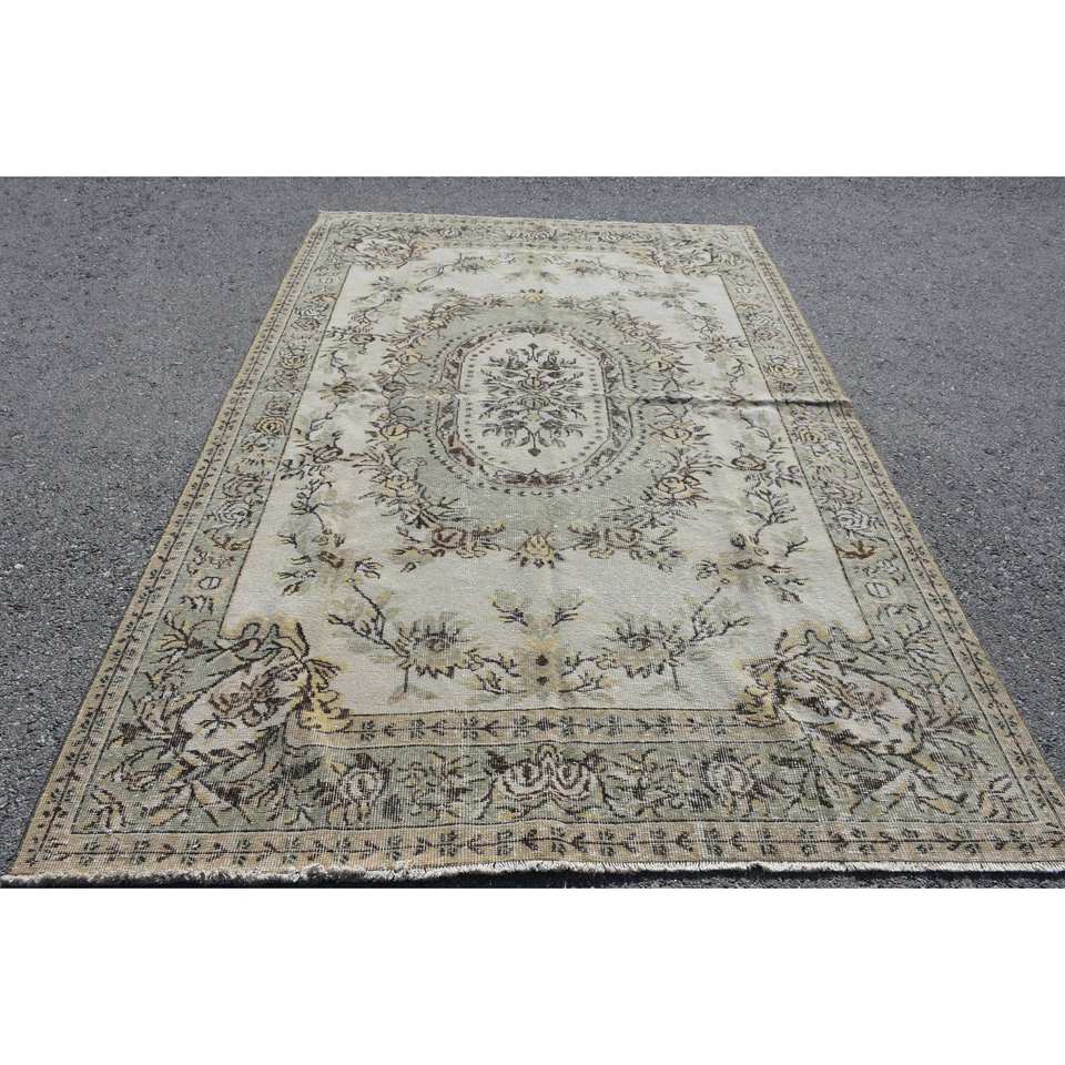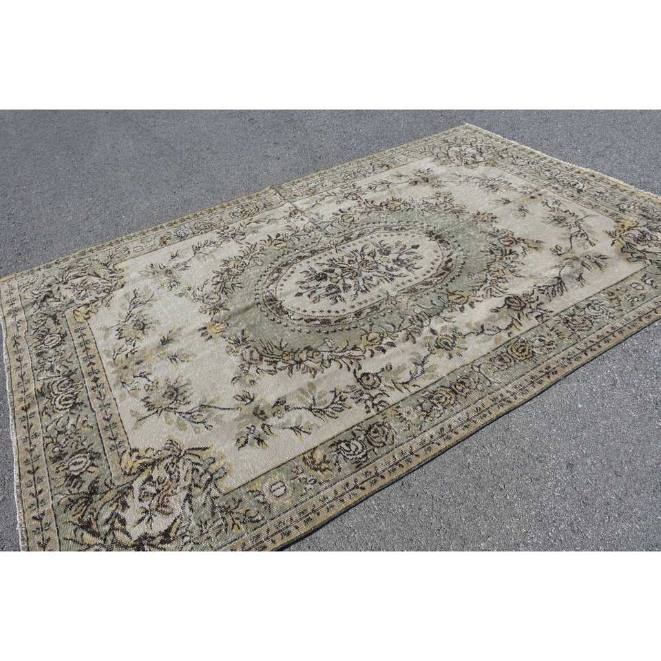 Tapis Vintage Turc en Laine Style Classique 6x9ft avec Design Rectangle Patchwork Beige et Vert pour Grandes Zones Soutenu en Latex