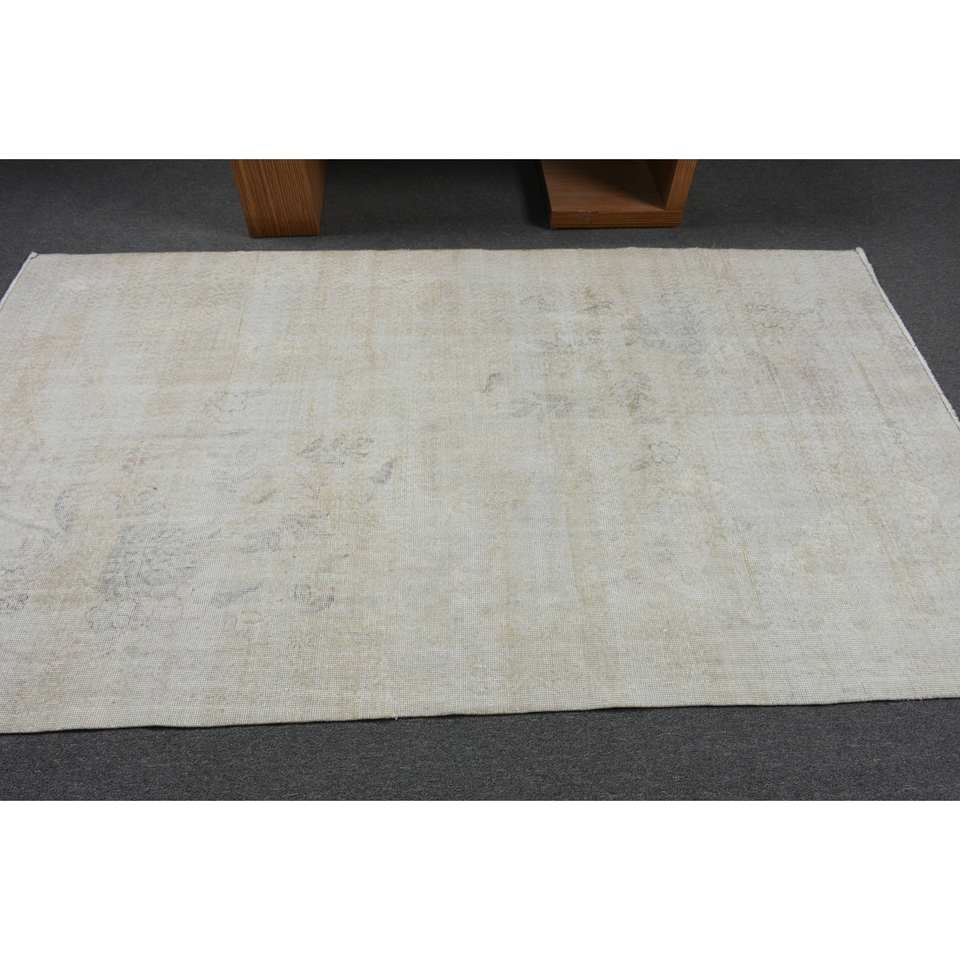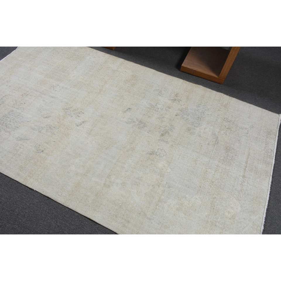 Tapis en laine turque vintage, beige, surdimensionné, 4.4x7,8 pieds, tissage plat, motif patchwork pour décorations de salon, latex