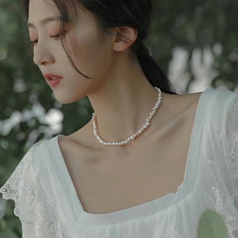Vintage Unique Baroque Natural Freshwater Pearl Necklace with Niche Brand Design Women's Collarbone Chain Pendant