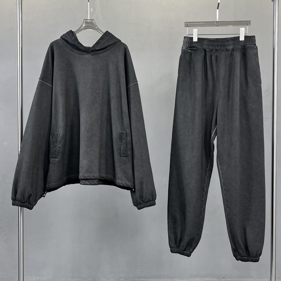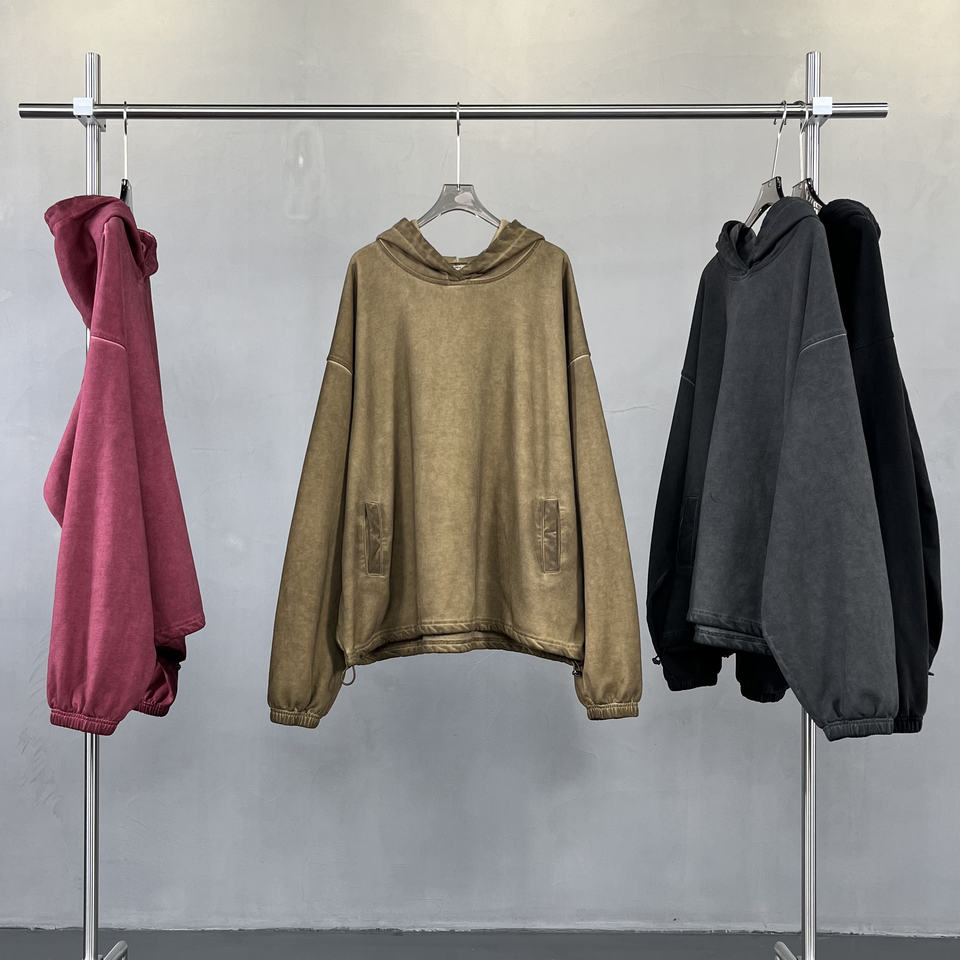 Sweat à Capuche Vintage Unisexe 450g en Coton Imprimé Style Rappeur, Brodé Personnalisé d'Hiver Lavé à l'Acide, Teint Uni