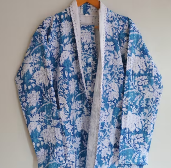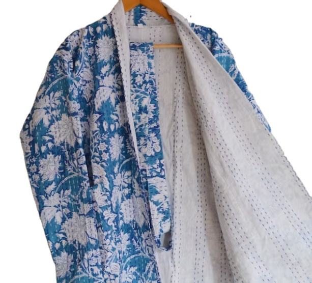 Veste Kantha vintage unisexe manteau de mode d'hiver à manches longues avec des motifs tissés tour de taille naturelle pour une tenue de fête
