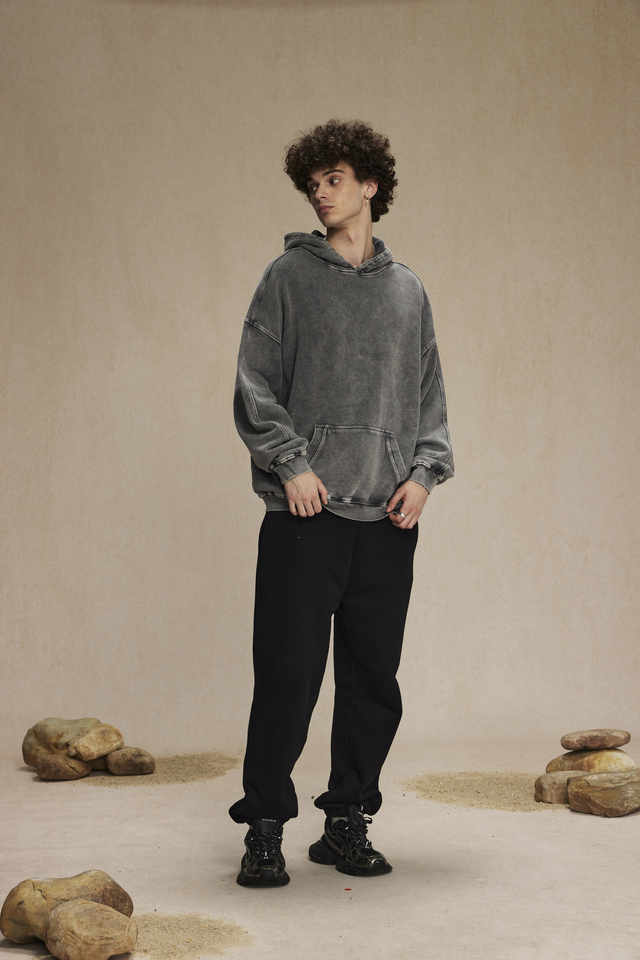 Vintage Wash Hoodie Men's 100% Cotton Heavyweight Streetwear Oversized Hoodie Acid Washed Blank Drop Shoulder Hoodie Unisex