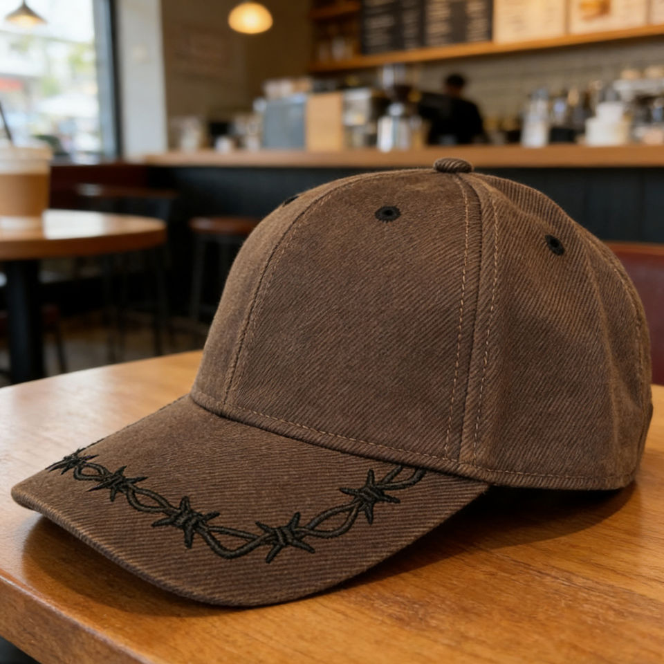 Casquette de baseball vintage délavée à 6 panneaux avec broderie 3D fil barbelé - Chapeau de soleil léger et décontracté pour le streetwear et les activités de plein air