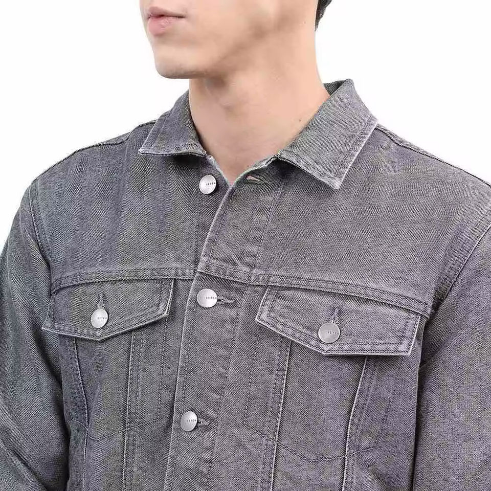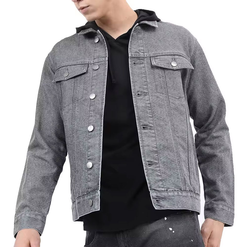 Veste vintage en jean délavé veste à capuche pour homme col montant avant Logo respirant grande taille coupe ample veste d'automne fabriquée au Pakistan