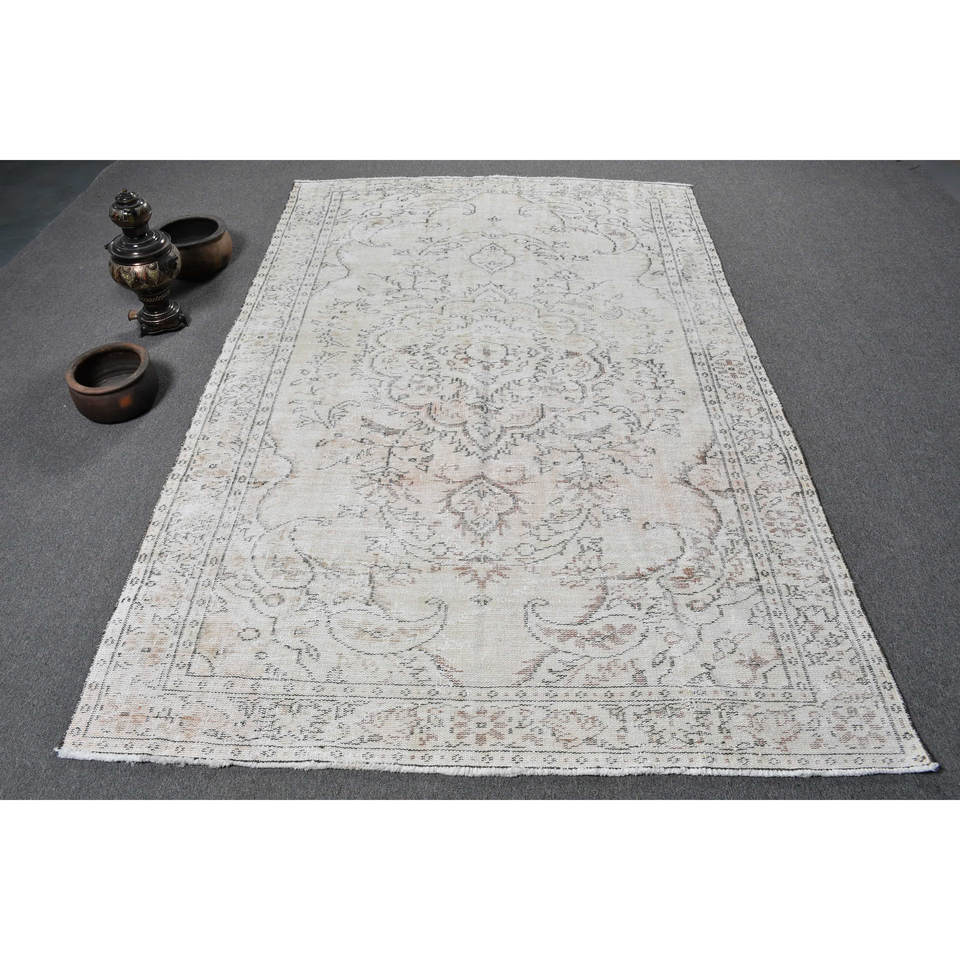 Tapis en Laine Vintage Blanc Beige de 5.4X9 pieds Tapis Turc à Tissage Plat Motif Patchwork Décoration de Salon avec Support en Latex