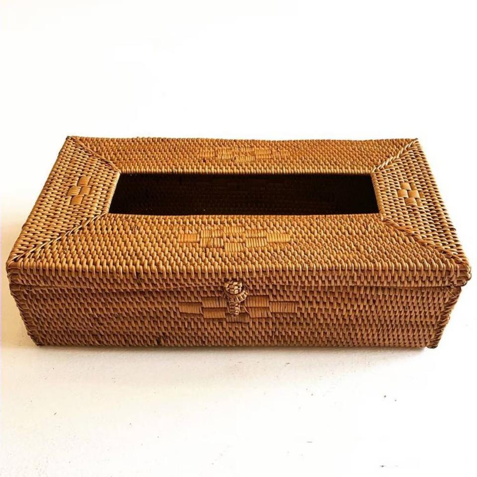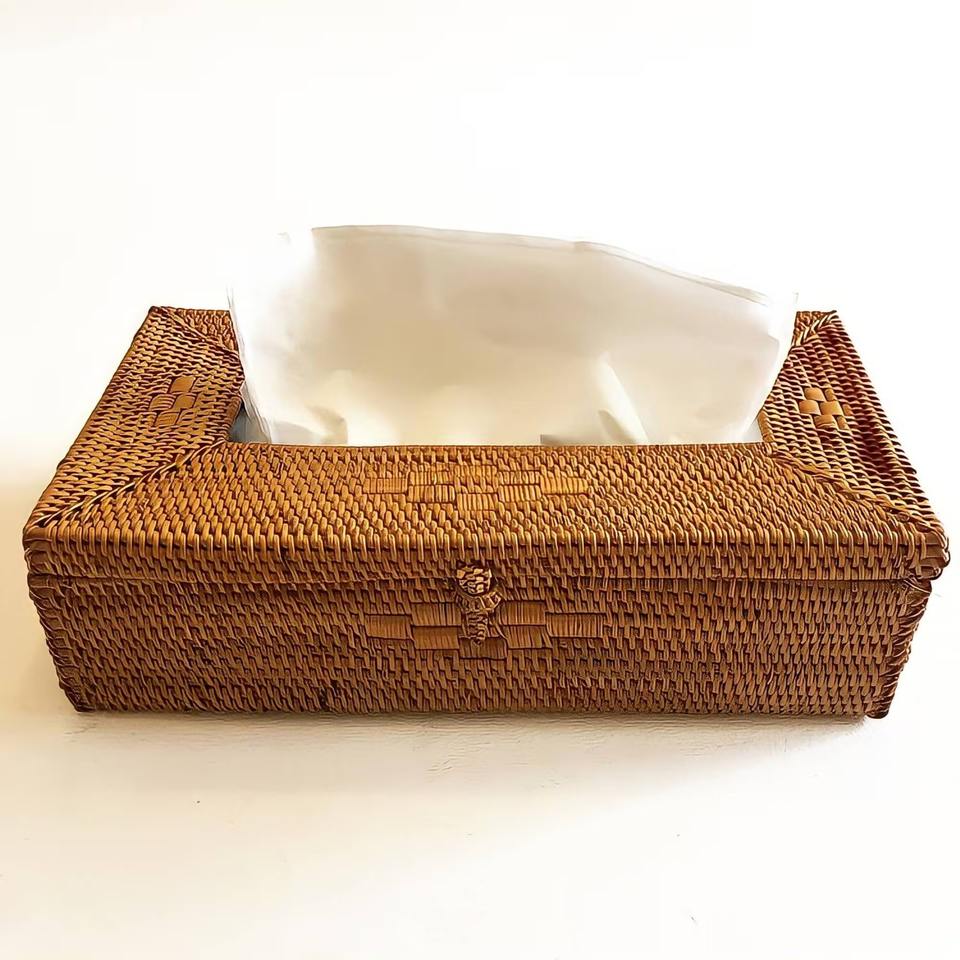 Boîte à mouchoirs vintage en rotin tressé, boîte de rangement artisanale, écologique, naturelle, décoration intérieure et extérieure, vente en gros du Vietnam