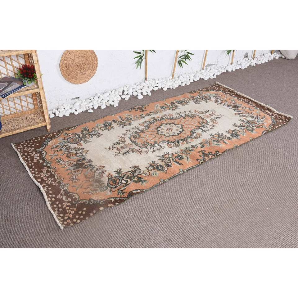 Tapis Floral Vintage en Laine Orange Marron 3.3X7.3 pieds Grande Taille Abstraite Puzzle Rectangle Couloir pour Adolescents Chambre Latex