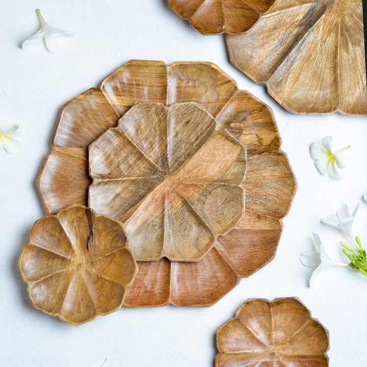 Vintage flower shaped wooden plate dinnerware set elegant serving plates natural dishes for wedding