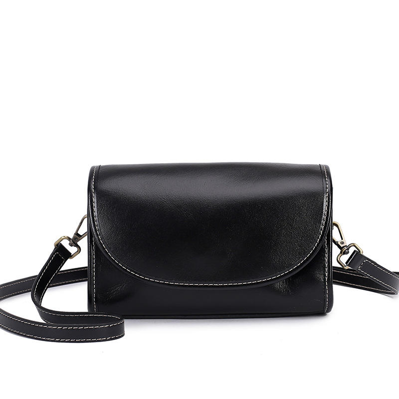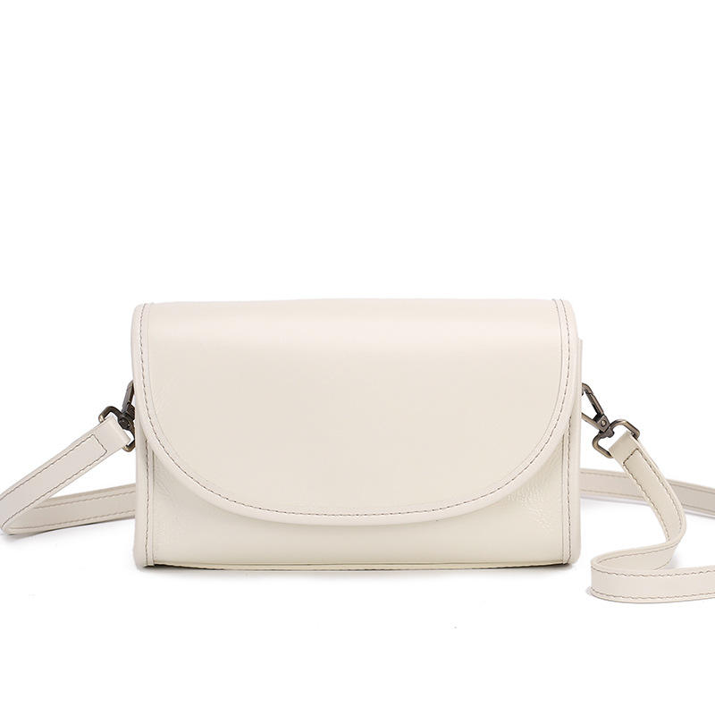 Vintage genuine leather crossbody bag, multi-color printed shoulder strap women's small square bag