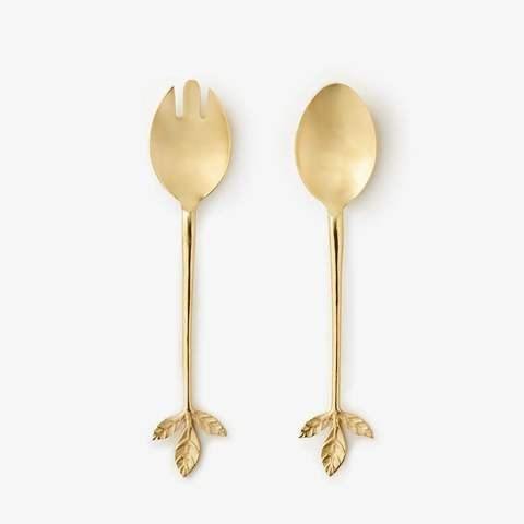 Service à salade en laiton massif d'inspiration vintage avec un design artisanal parfait pour les paramètres de table de cuisine rustique et ethnique