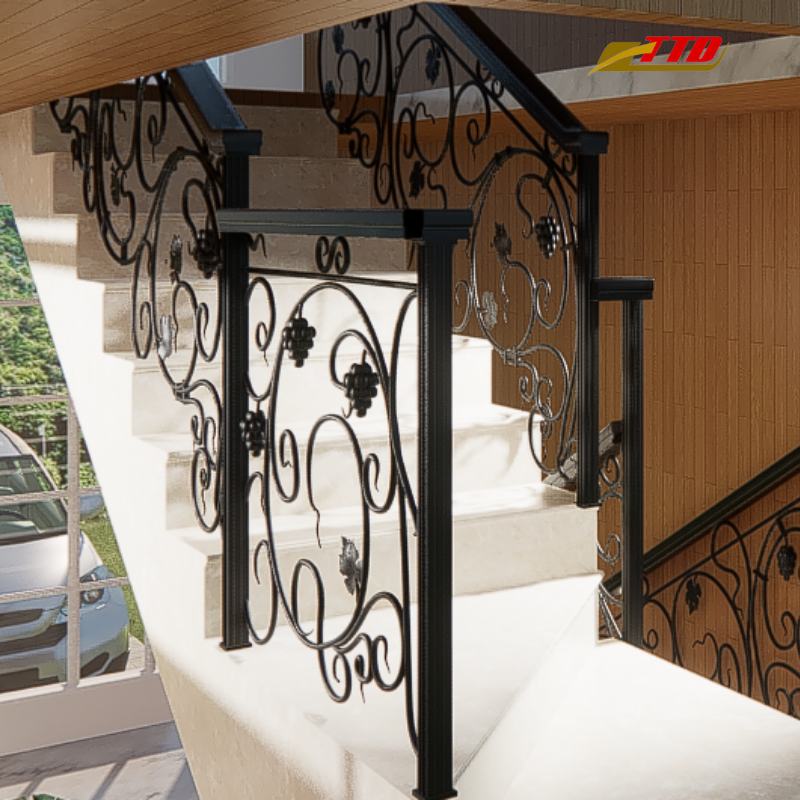 Vintage-inspired wrought iron balcony railings with intricate floral scrollwork designed by skilled Vietnamese metal artisans