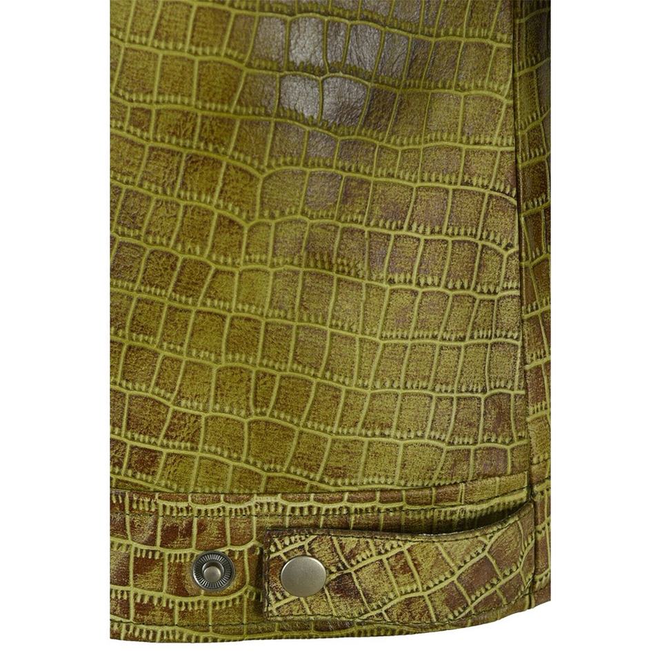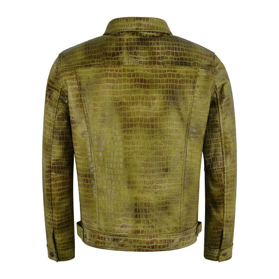 Olive Green Custom Crocodile Leather Jacket Trucker Style Exotic Crocodile Jacket Button Up Mens Womens Fashion Coat