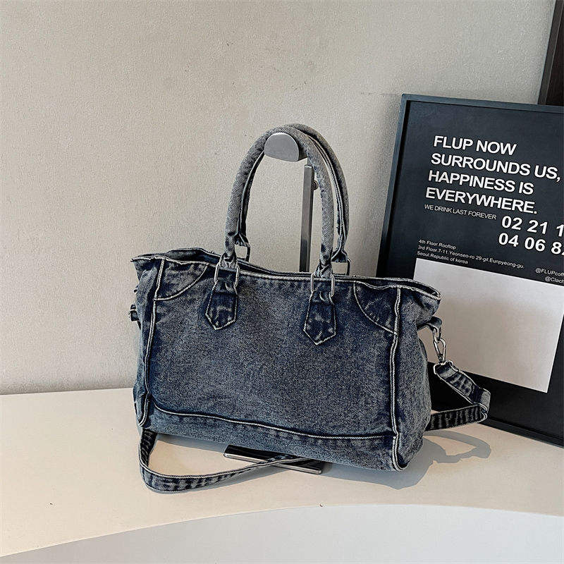 Vintage washed denim handbag for women, large capacity single shoulder crossbody bag, casual women's handbag