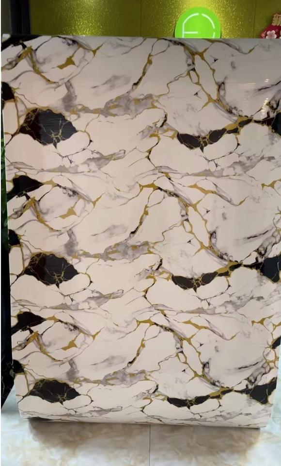 Vinyle brillant marbre pierre auto-adhésif Peel & Stick mousse autocollant mural pour intérieur marbre doré décor Film protecteur