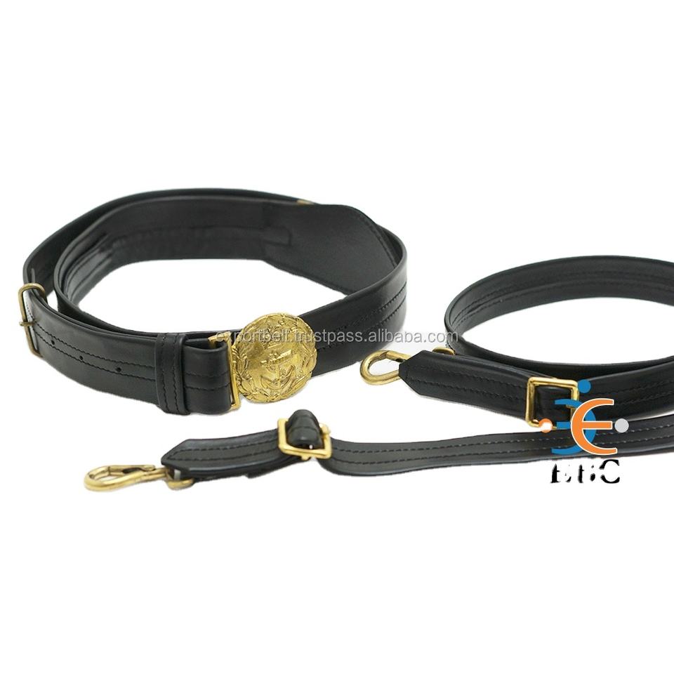 TWO LEATHER BACKED SLINGSGOLD METAL BUCKLE