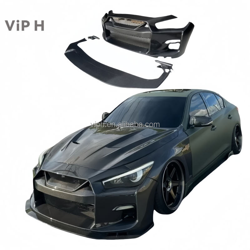 Pare-chocs avant en fibre de carbone complète Viph pour Infiniti Q50 - Installation par vis - Peinture noire - Code couleur - Ajustement universel