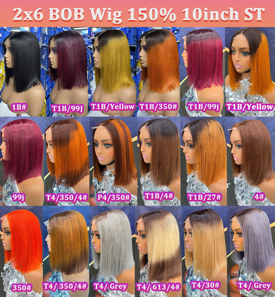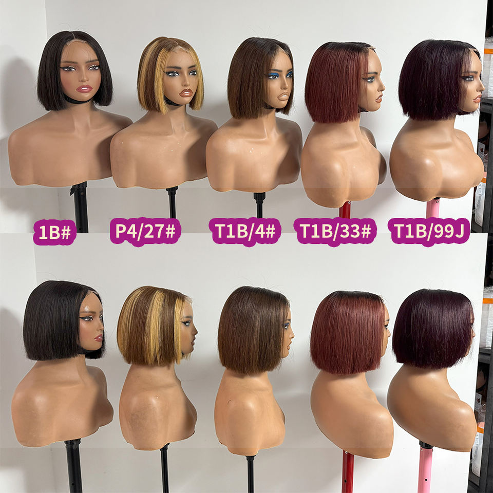 Nom du produit:Perruques Bob de couleur de cheveux raides, cheveux humains, dentelle frontale