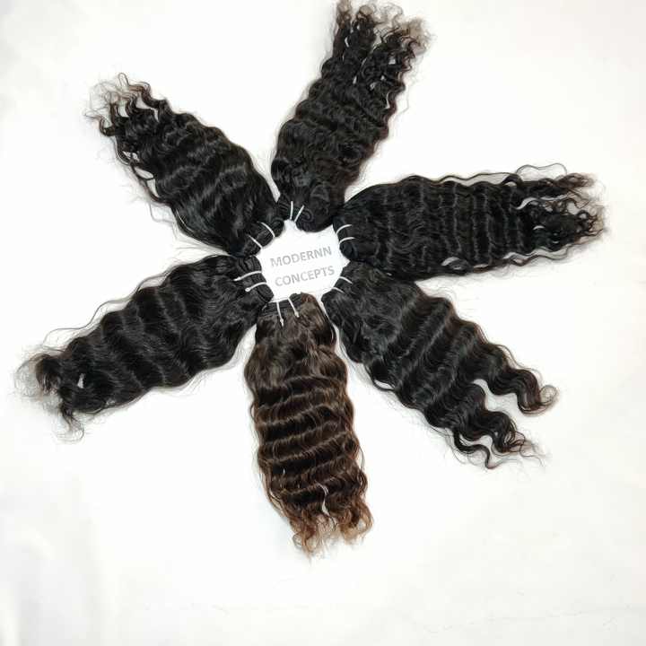 Extensions de cheveux humains de temple indien à double trame, couleur naturelle brute, faisceaux ondulés soyeux, boucles vietnamiennes à vague profonde lâche