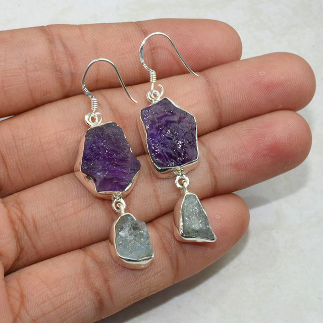 Boucles d'oreilles en argent Sterling 925 améthyste aigue-marine de forme fantaisie virtuelle, bijoux en argent Sterling 925, vente en gros de bijoux en argent Sterling 925