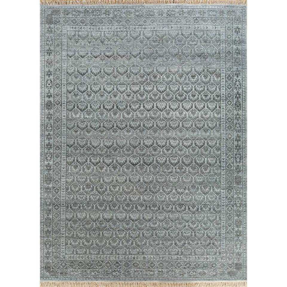 Tapis en laine noué à la main bleu Viscaya, grand modèle rectangulaire à motifs pour couloir, idéal pour la maison, salon, chambre à coucher, pour adolescents - LCA-37 (CS-01)