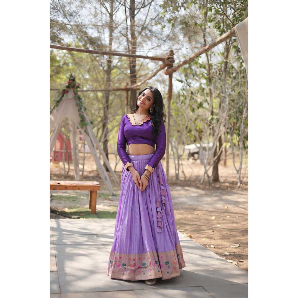Viscose Jequard Women's Set with Kalamkari Jari Border Lehenga Choli
