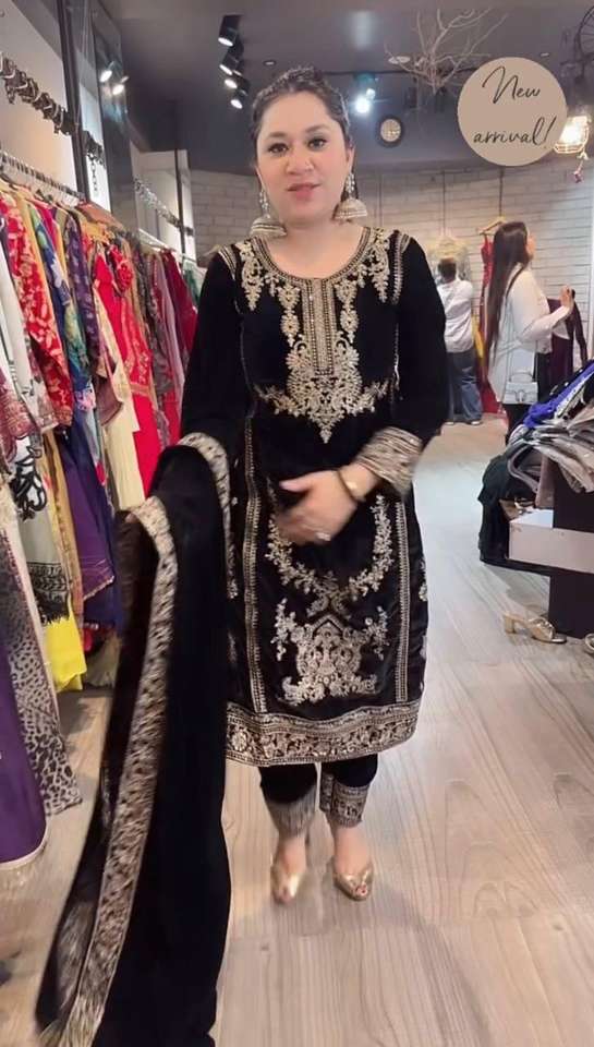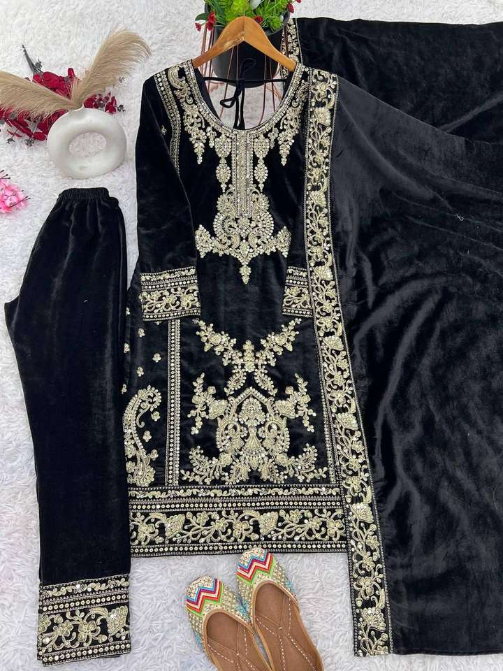Viscose Velvet Sequence Embroidered Work Top and Bottom With Dupatta High-Quality New Designer Party Wear Pure Velvet Suit Set