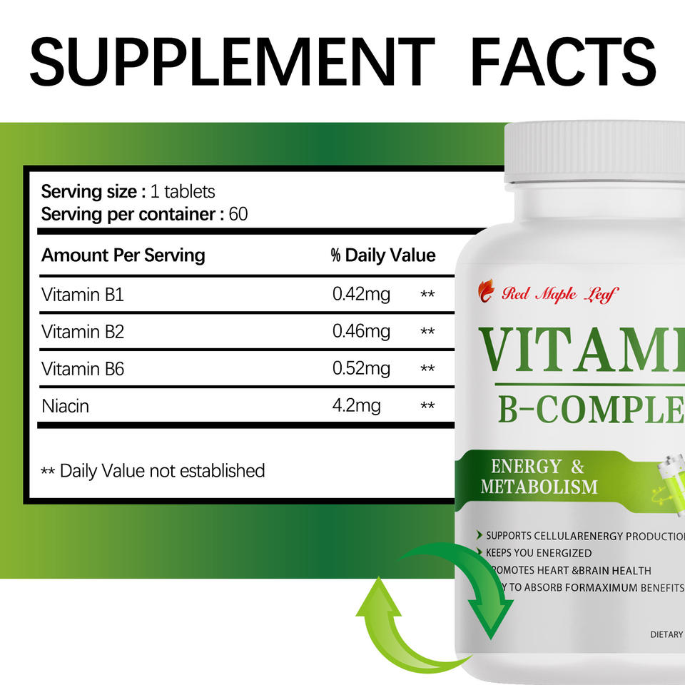 Comprimés d'antioxydants Complexe de Vitamine B - Mélangés à la Vitamine C et E, Santé Cellulaire, Approvisionnement en Gros