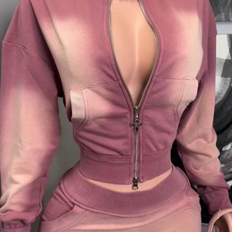Viviblook Z703ST03 Women Outfits Crop Zipper Jacket Skirt Set Girls Vantage Y2k Hoodie Slim Mini Skirt 2 Piece Set for Women
