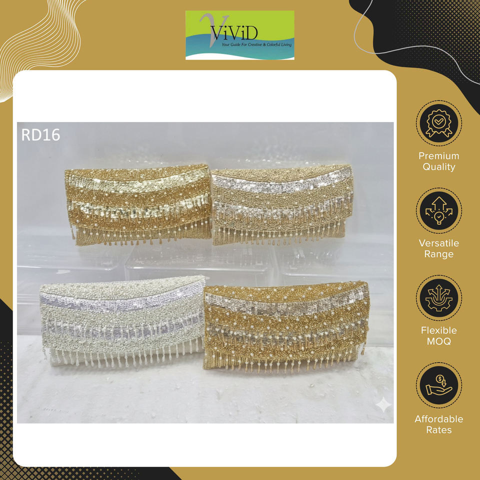 decoration:Heavy beadwork and sequins with curved embroidered motif
